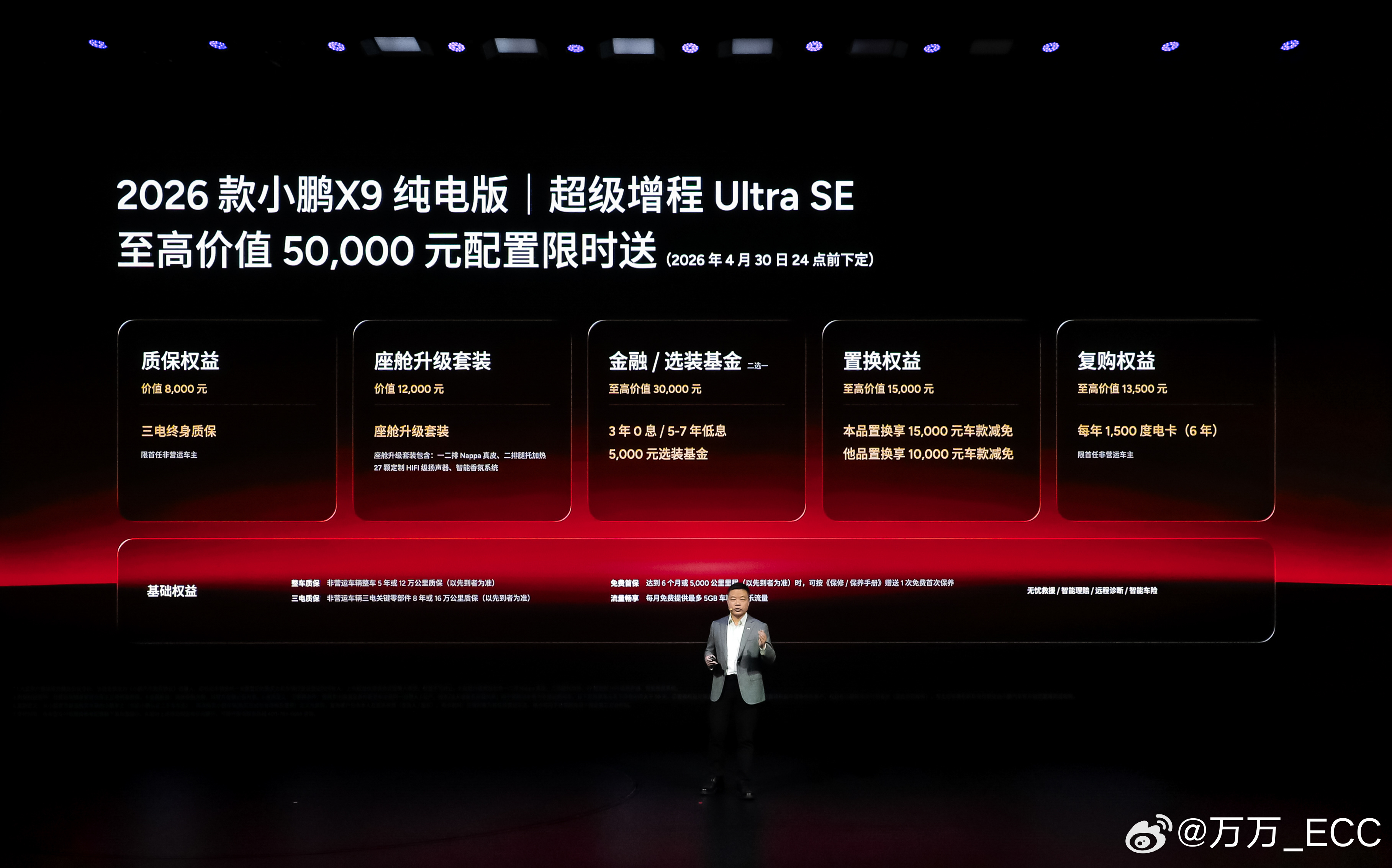 2026款小鹏X9纯电版正式上市,30.98万起。共5款版型,售价30.98-36.98万元;增程版新增1602 Ultra SE,32.18万元。