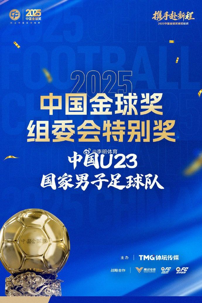 U23国足获中国金球奖组委会特别奖 中国金球奖