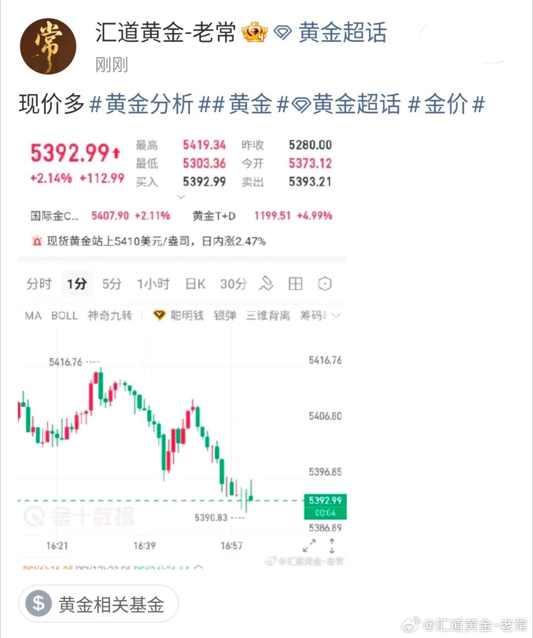 现货黄金日内大跌3.00%,现报5161.17美元/盎司疯狂砸盘了最高点5379
