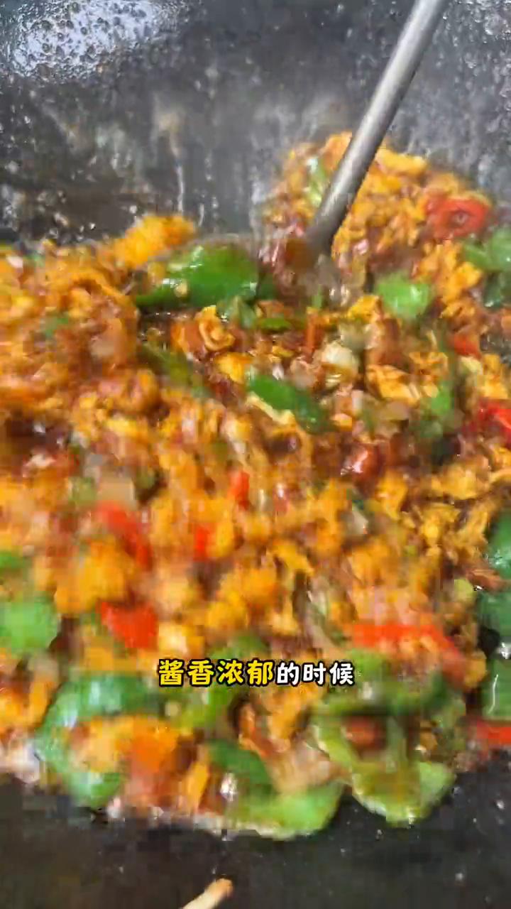 鸡蛋炸酱面。 热水一期鸡蛋炸酱面的保姆级教程,没有肉却能吃出肉味,做法快速又简单,节假日吃腻了来上一碗简直太舒服了。 ·食材非常简单,细一点的螺丝椒5根,粗的就放3根,红辣椒可放可不放,它是点缀颜色,特别能吃辣的可以换成小米辣。手掌长一段大葱,大葱要多一点,炸出来的酱才香。以及4个鸡蛋。 ·首先把辣椒切成小的滚刀块,也可以直接切成圈,红辣椒斜着切圈就行。大葱一劈四瓣切成葱花,大葱辣椒放一块,喜欢可以再来点黄瓜丝,吃起来会更加清香,不喜欢就不放。 ·接着来调酱汁,超市里买的黄豆酱选择略微有一点点甜味的,不要选择齁咸齁咸的,要不然用量就不一致了。几个鸡蛋几勺酱,4个鸡蛋就来上4平勺的酱,放多了会齁咸。 ·然后来上一满勺的蚝油、一勺生抽、老抽2/3勺调颜色、陈醋半勺、白糖一茶勺,加糖和醋能够让酱的味道吃起来更柔和,并不能吃出来甜味或者酸味。家里有可以来上半茶勺的十三香,没有就不放。再来上一茶勺的鸡精或者味精,搅拌均匀,酱就调好了。切记现在先不要着急往里面加水,现在就加水会影响炸酱时候的香味。 ·最后再来打鸡蛋,4个鸡蛋打入碗中,鸡蛋如果打的太早表皮就风干了,把碗斜着点充分的搅拌均匀。 ·接着来起锅烧油,这里的用油量有两个方案,如果想特别香,鸡蛋炸出来一丝一丝的油就需要多一些,介意油可以用少一点。炸出来的鸡蛋是一朵一朵的,但是一样好吃。拍视频肯定要呈现给大家最佳效果,所以油肯定是多一些。 ·开大火把油加热,这个期间转锅,把锅边也润一下。 ·重点一:一定要把油烧热,烧至锅呼呼冒烟。 ·重点二:冒烟之后就转为小火,拿一双木筷子,蛋液缓缓的呈线状倒入锅中,边倒边搅,慢慢倒不要着急,这样炸出来一丝丝的,特别好吃。看看鸡蛋的效果。 ·等到蛋液凝固,下入辣椒和大葱,这个时候再转为大火,把辣椒和葱的香味炒出来,稍微多炒一会,让辣椒微微变软。 ·大约1分钟左右就倒入酱汁,酱汁不要倒在锅边上,否则容易糊。酱进锅了先不要动,在碗中加入跟酱等量的清水,先放着备用。 ·接着再翻炒锅里的酱,把酱的香味彻底激发出来。 ·等到颜色都炒匀,酱香浓郁的时候,倒入这碗清水,再次翻拌均匀,然后转为中大火,把水收一下,加这点水就是能吃出肉味的关键。不理解的朋友可以试一试,特别好吃。汁不要收的太干,就是这种状态,稍微黏的糊的就可以出锅了。 ·炸好酱了,煮面条,我用的是这种鲜的宽面,喜欢用啥面就用啥面。煮好的面捞出来,一定要过凉水,要不然容易坨。吃不了凉的朋友可以过热水,把表面糊化的部分冲掉。 ·过完水的面条分装在碗中,来点黄瓜丝,这酱的香味简直没治了。根据口味添加在面条上,搅拌均匀。 绝顶好吃,大家一定要去试试。