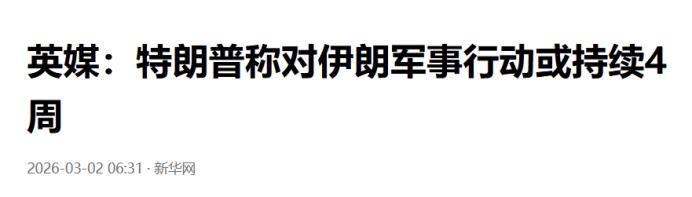 特朗普野心暴露,最后通牒八国响应,美媒:伊朗对中国没那么重要 当地时间3月1日,特朗普谈到了一个很关键的问题,称伊朗“是一个大国”,预计对伊朗的军事行动会持续4周时间。特朗普还表示,这是一个目前的预期判断,随着战局的改变,这个时间“或者更短”。 看似无关紧要的一次发言,特朗普对外界透露了两个信号,一个信号是美军此次对伊朗的军事行动会一直打下去,目前的计划是4周时间。 这样的期限设定,相当于佐证了此前各界对特朗普想打闪电战的推测,也相当于特朗普给伊朗下达了最后通牒,美以未来的火力会越来越猛烈,以便达成在这个期限之前完成作战目标。 特朗普口中的“4周”从来不是随口一提,更不是对战争时长的盲目预估。他心里很清楚,伊朗不是软柿子,毕竟伊朗能在美以联合袭击后,迅速展开多轮反击,甚至宣称袭击美军航母、打击数十个美以军事目标。 这个4周期限,本质就是特朗普的战略算计。他想靠高强度、短时间的打击,快速摧毁伊朗的核心军事力量,逼伊朗妥协投降,避免陷入长期战争的泥潭。要知道,现在正值美国国会中期选举年,一场旷日持久且伤亡惨重的冲突,会直接影响特朗普的选举支持率,这是他绝对不能接受的。 另一个信号,藏在特朗普那句“伊朗是一个大国”里。这句话看似是对伊朗的认可,实则暴露了他的真实野心——他要的不是简单打击伊朗,而是彻底掌控中东局势,甚至推翻伊朗现政权。 此前美以已经对伊朗发动了大规模空袭,伊朗最高领袖哈梅内伊也在袭击中遇害,伊朗国内已经成立临时领导委员会维持秩序。特朗普在这个节点说伊朗是“大国”,就是在暗示,只有他能拿捏这个“大国”,只有美国能决定伊朗的未来走向。 这些国家之所以跟风响应,核心还是利益捆绑。它们要么依赖美国的军事保护,要么想借助美国的力量打压伊朗,争夺中东地区的话语权,说白了就是跟着美国喝汤,换取自身的利益保障。 就在美以联军加大对伊朗打击力度、八国响应最后通牒的同时,美国彭博社跳出来搞事情,公然宣称“伊朗对中国没那么重要”。 美媒抛出这个论调,绝非偶然,背后全是算计。它们刻意曲解中伊关系,一边说中国从伊朗进口的石油,在中国对外贸易总量中占比不到1%,一边炒作伊朗禁止船只通过霍尔木兹海峡,会影响中国利益,试图制造“中伊关系薄弱”的假象。 明眼人都能看出来,美媒这是在离间中伊关系。它们想向伊朗传递“中国不会全力支持你们”的虚假信号,瓦解伊朗民众的抵抗意志,让伊朗失去外部支持,从而更容易被美国拿捏。 同时,美媒也是在转移国际视线。现在全球舆论都在谴责美以发动非法袭击、杀害伊朗最高领导人,践踏国际关系基本准则。美媒把话题扯到中国身上,就是想掩盖美以挑起冲突、破坏中东稳定的核心责任,试图把中国拖下水,打乱中国的外交节奏。 其实美媒的这番话,纯属自欺欺人,更是暴露了美国的恐惧。美国害怕伊朗顽强抵抗,拖垮美军的力量;更害怕中国会出手声援伊朗,打破美国在中东的垄断格局。 中国的立场一直很明确,中方已经明确表态,坚决反对和强烈谴责袭击并杀害伊朗最高领导人的行为,认为这种做法严重侵犯伊朗主权安全,违背《联合国宪章》宗旨原则。 还有一个细节不能忽视,特朗普此前曾透露,他“非常清楚”谁将领导伊朗,但却不肯明说。这种刻意的模糊,就是一种战略威慑,他想让伊朗知道,美国掌握着伊朗内部的权力变化,随时可以施加影响。 但特朗普显然打错了算盘。伊朗虽然遭遇重创,最高领袖遇害、多名高官身亡, 而那些响应特朗普最后通牒的八个国家,也未必能得到好处。中东局势一旦失控,战火蔓延,这些国家必然会受到波及,能源安全、国内稳定都会受到影响,最终可能得不偿失。 美媒炒作“伊朗对中国没那么重要”,更是毫无意义。中国始终坚持独立自主的和平外交政策,不会因为外部舆论就改变自己的立场。中伊之间的合作,基于双方的共同利益,不会被美国的挑拨离间所破坏。 说到底,特朗普的野心越大,反而越容易陷入困境。一场没有正义性的战争,一场违背国际社会意愿的军事行动,最终只会让美国付出惨重的代价,也只会让中东地区陷入更深的动荡。而美媒的拙劣炒作,不过是美国霸权主义的陪衬,根本改变不了局势的走向。