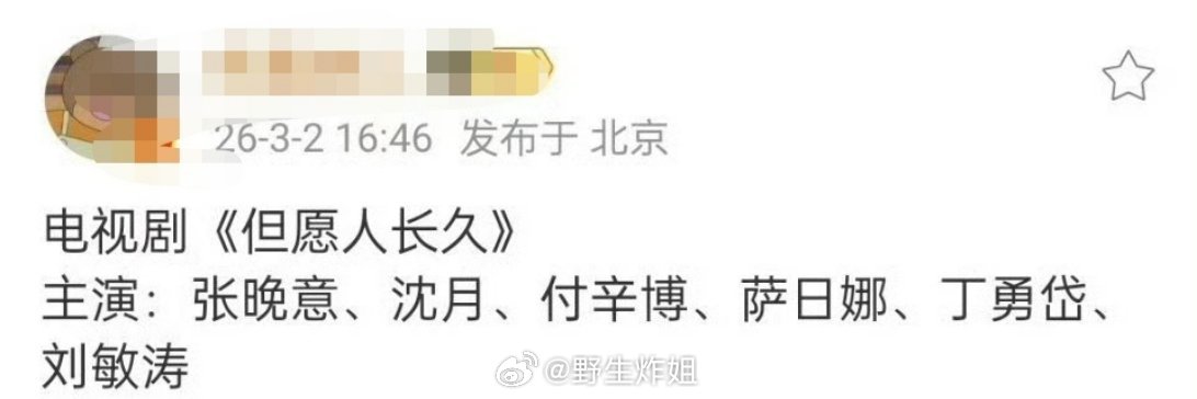 张晚意跟沈月确认要出演《但愿人长久》这部剧了,演员阵容有张晚意、沈月、付辛博、萨日娜、丁勇岱、刘敏涛,你期待看到这部剧不?