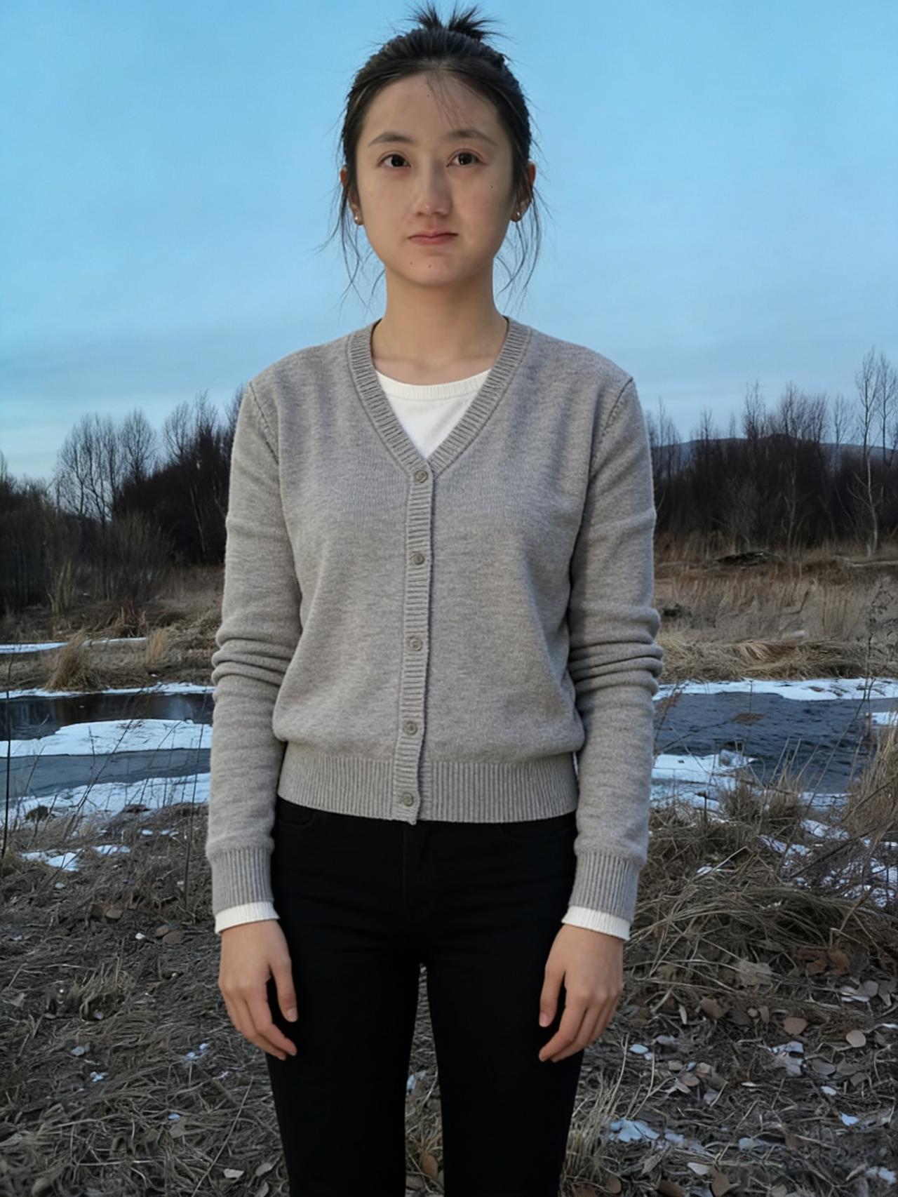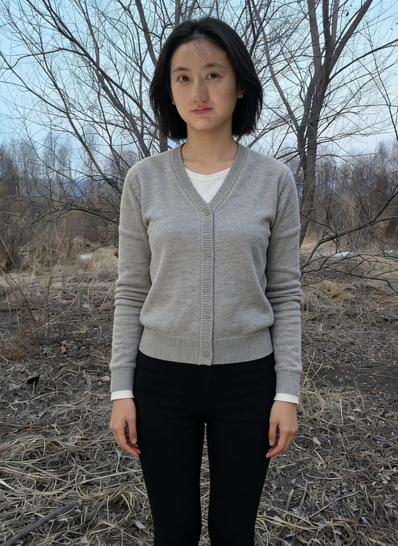 她从冬的褶皱里走来 踩着碎叶与薄冰的节拍 灰开衫是大地的底色 白内搭是云的留白 黑裤管是夜未醒的独白 ~ 轻丝飘飘,是未系的丝带 短发利落,是剪断的徘徊 卷发卷着风的呢喃 丸子头挽起一整个季节的等待 ~ 她的目光掠过冰面 冰面便有了涟漪 她的身影落进枯林 枯林便有了生机 连那些光秃的枝桠 都在为她的存在,重新定义 ~ 旷野无言,她是唯一的声息 素衣无华,她是最亮的星子 在这清寒的天地间 她以一身素色,行出万种风情 让荒芜的时光,都有了温柔的姓名
