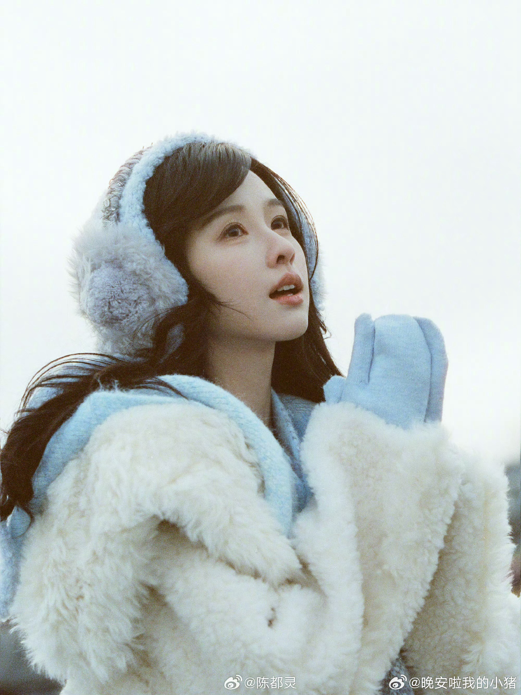 陈都灵冬日滑雪大片,氧气随拍,美丽又保暖的造型