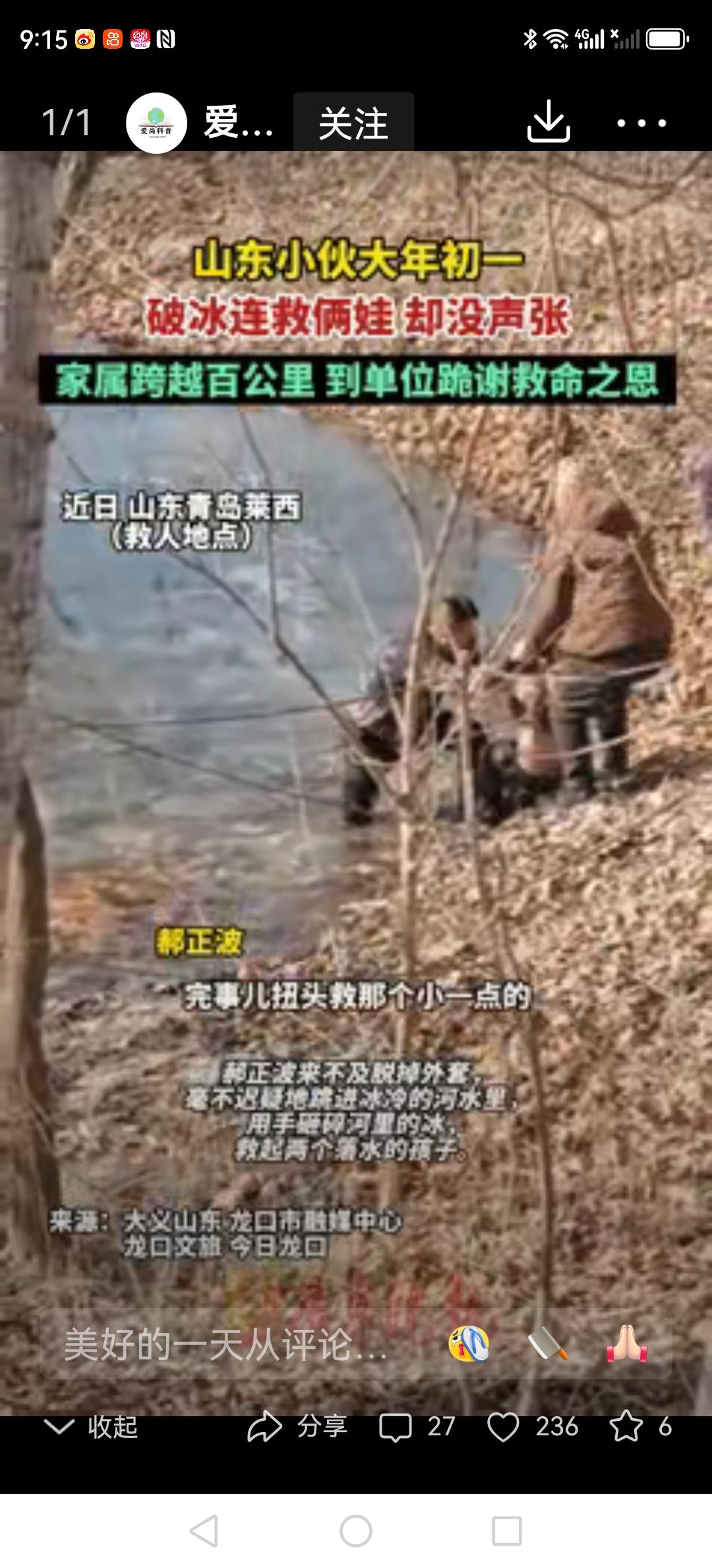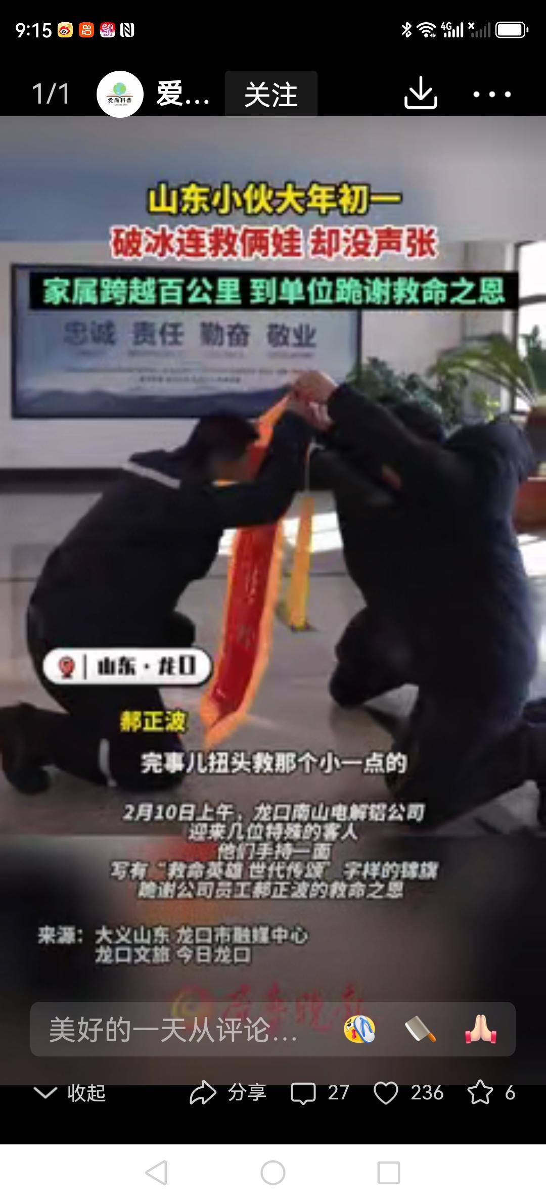 大年初一的青岛,天还没亮透,河面上的冰结得正厚。可谁也没想到,两个孩子在河边玩时不小心掉进了冰窟窿,刺骨的河水瞬间没过了孩子的腰。就在家长急得快哭出来的时候,一个身影冲了过去——是路过的郝正波。他没多想,直接趴在冰面上,赤手空拳就往冰窟窿里砸,冻得通红的手被冰棱划破了也没停,硬是用拳头和胳膊肘砸开了一条能让人爬出来的道。 等把两个吓得瑟瑟发抖的孩子抱上岸,郝正波才发现自己浑身都湿透了,风一吹直打哆嗦,回到家就发起了高烧,烧到快39度也没跟家人提一句救人的事。直到被救孩子的家长带着锦旗,开着车跑了半个多月才找到他上班的车间,看到对方扑通就要下跪,他赶紧一个箭步冲过去扶住,那一瞬间,在场的同事都红了眼眶。 更戳人的是这份双向的心意:他救人时根本没想着要留下名字,被救的家长却为了说声“孩子的命是您给的”,硬是辗转打听,开着车跨了上百里路,就为了当面道谢。网友说这就是最实在的“双向奔赴”:青岛的这个大哥,拳头能砸开厚厚的冰,却怎么也挡不住人家递过来的感谢;被救的家庭,车轮碾过风雪,心里装着沉甸甸的恩情。 其实英雄哪有那么远?他可能就是你楼下默默帮你提重物的邻居,是食堂里多给你一勺菜的阿姨,是加班时办公室里留的那盏灯。你看啊,那些做好事的人,总像冰底下的暗流,不声不响;可被帮助的人,却像春天里破开冰层的阳光,把温暖都亮出来了。这样的故事,是不是让你也想起了身边那些悄悄温暖着你的人? -search.byteimg.com/img/tos-cn-i-qvj2lq49k0/07be3cd71caf4a04b3a691d84e88f7ae~480x480.gif青岛郝熠然 青岛玩雪攻略 青岛女游客落水 青岛女子落水 青岛落水女孩 青岛虎山街道 青岛冬日奇观