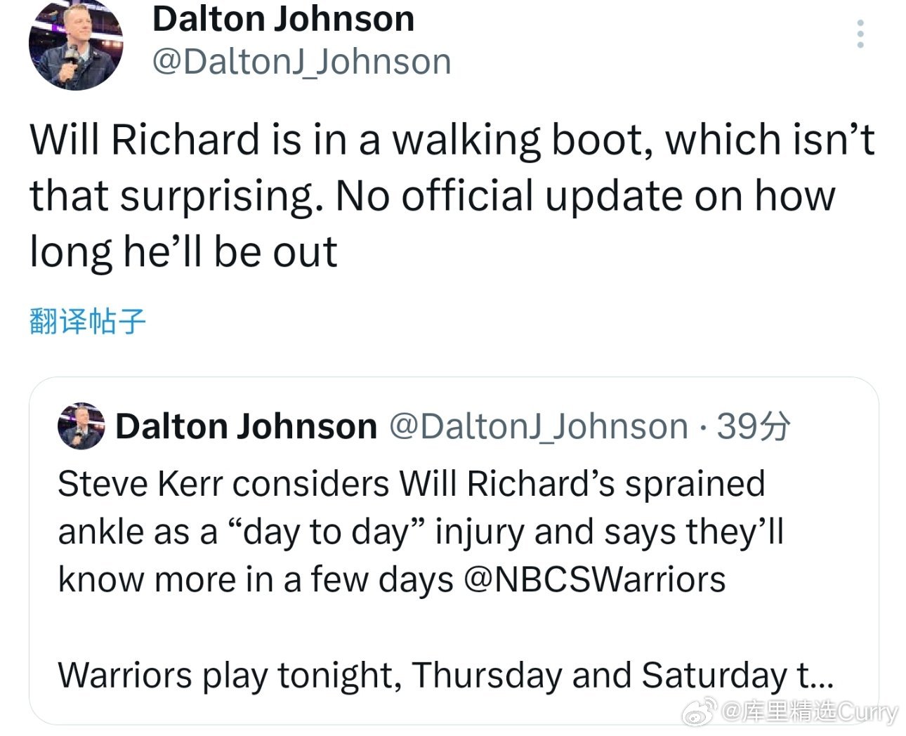 霍福德,波尔津吉斯明日伤病管理轮休。梅尔顿复出,塞斯·库里大概率出战!