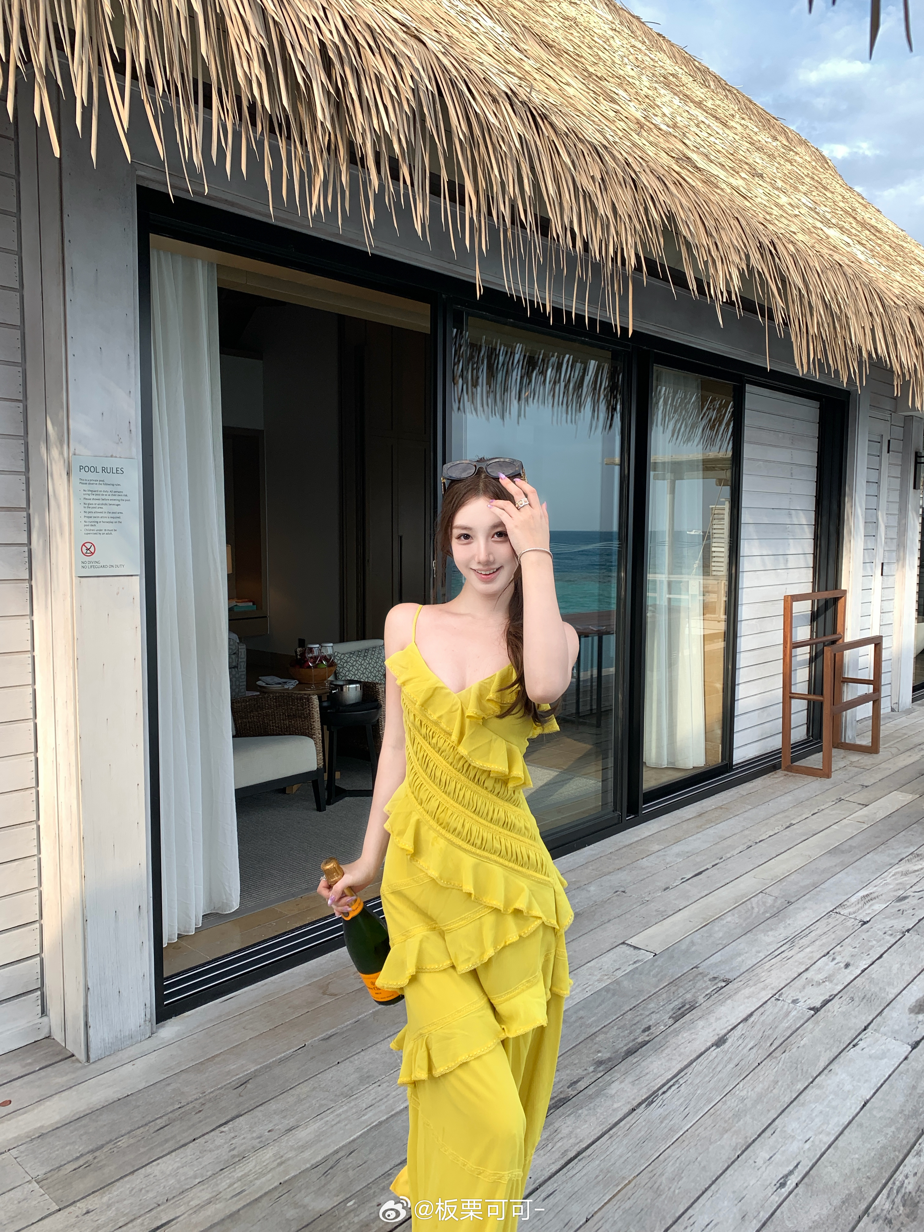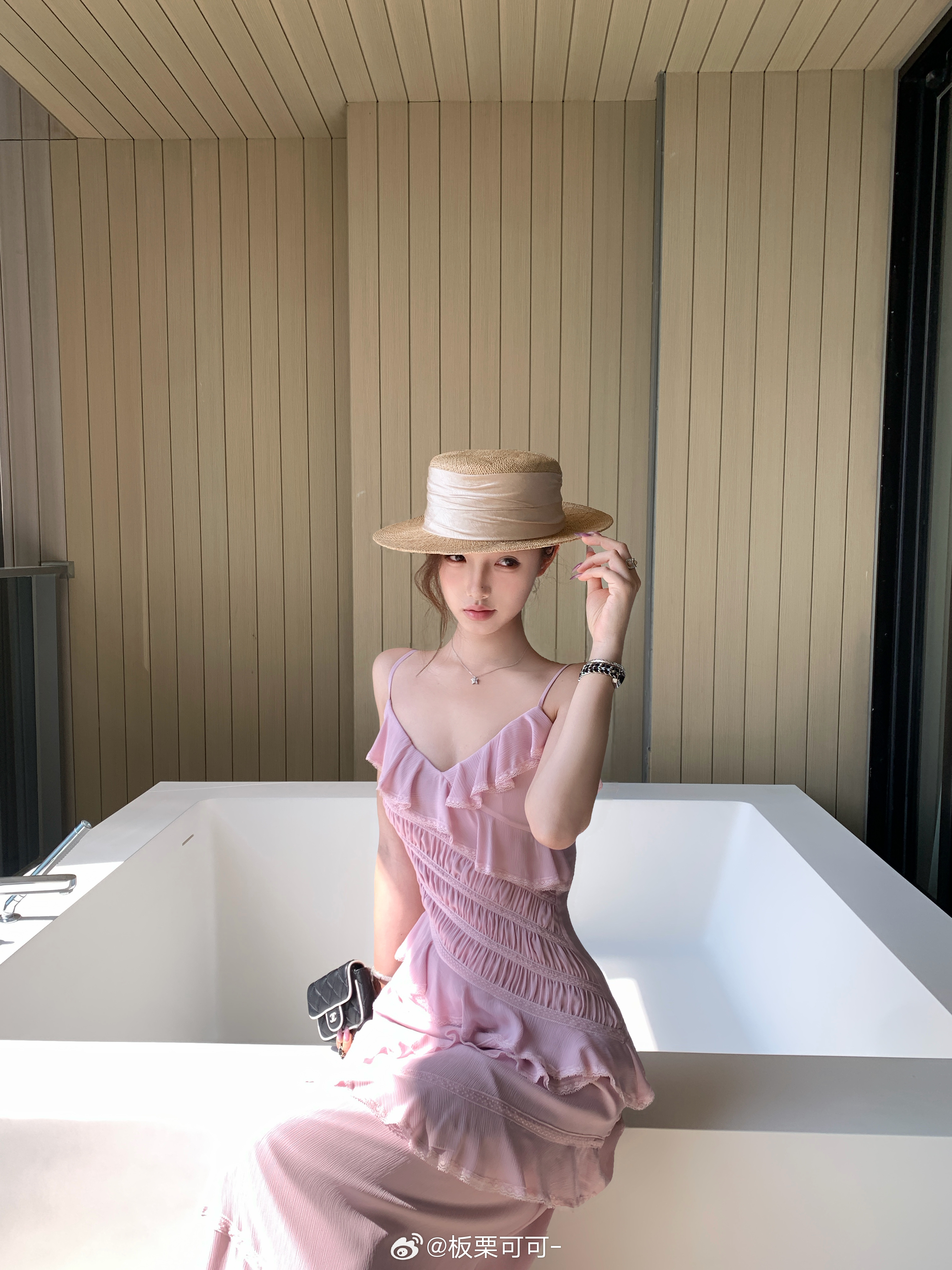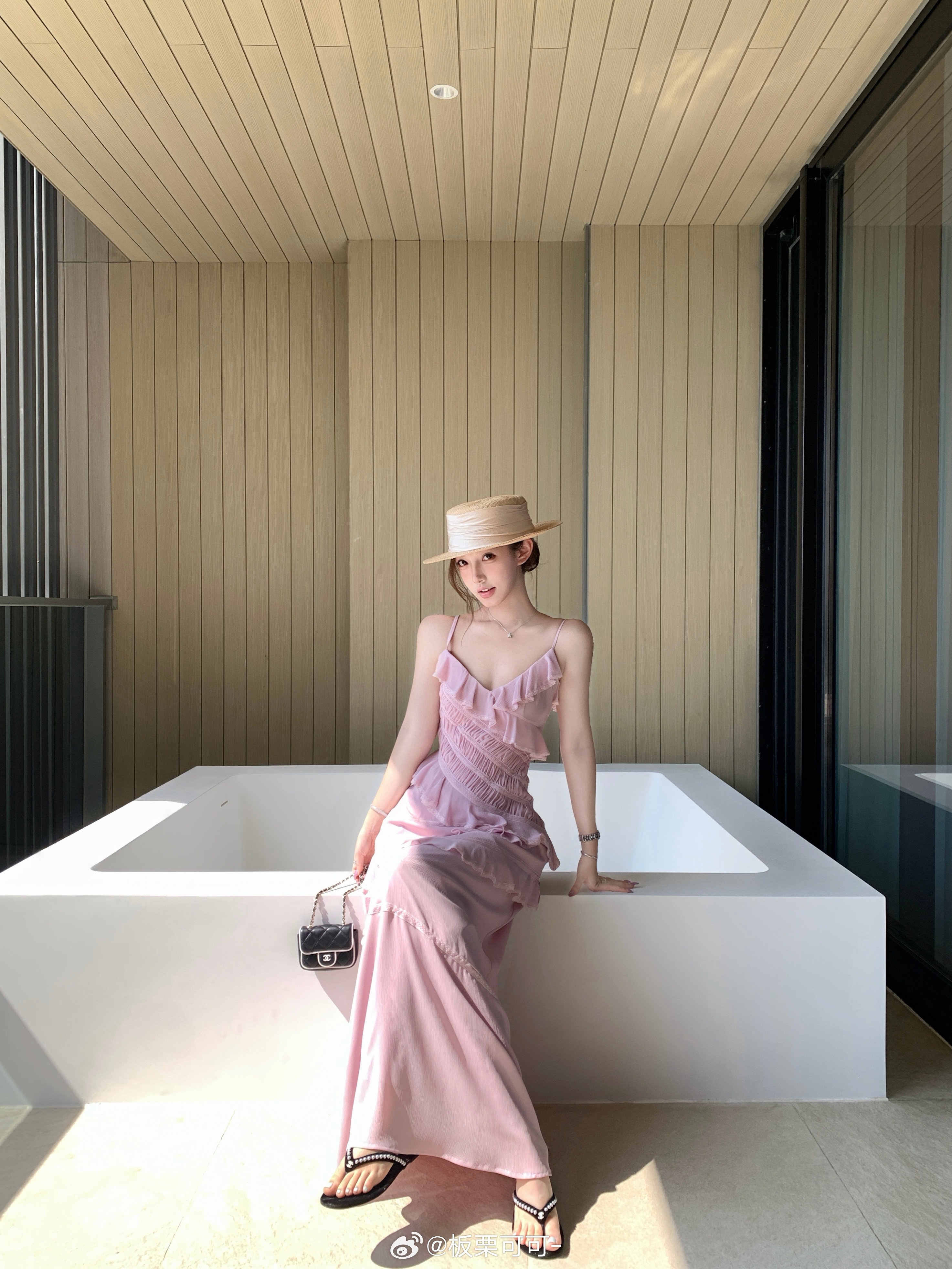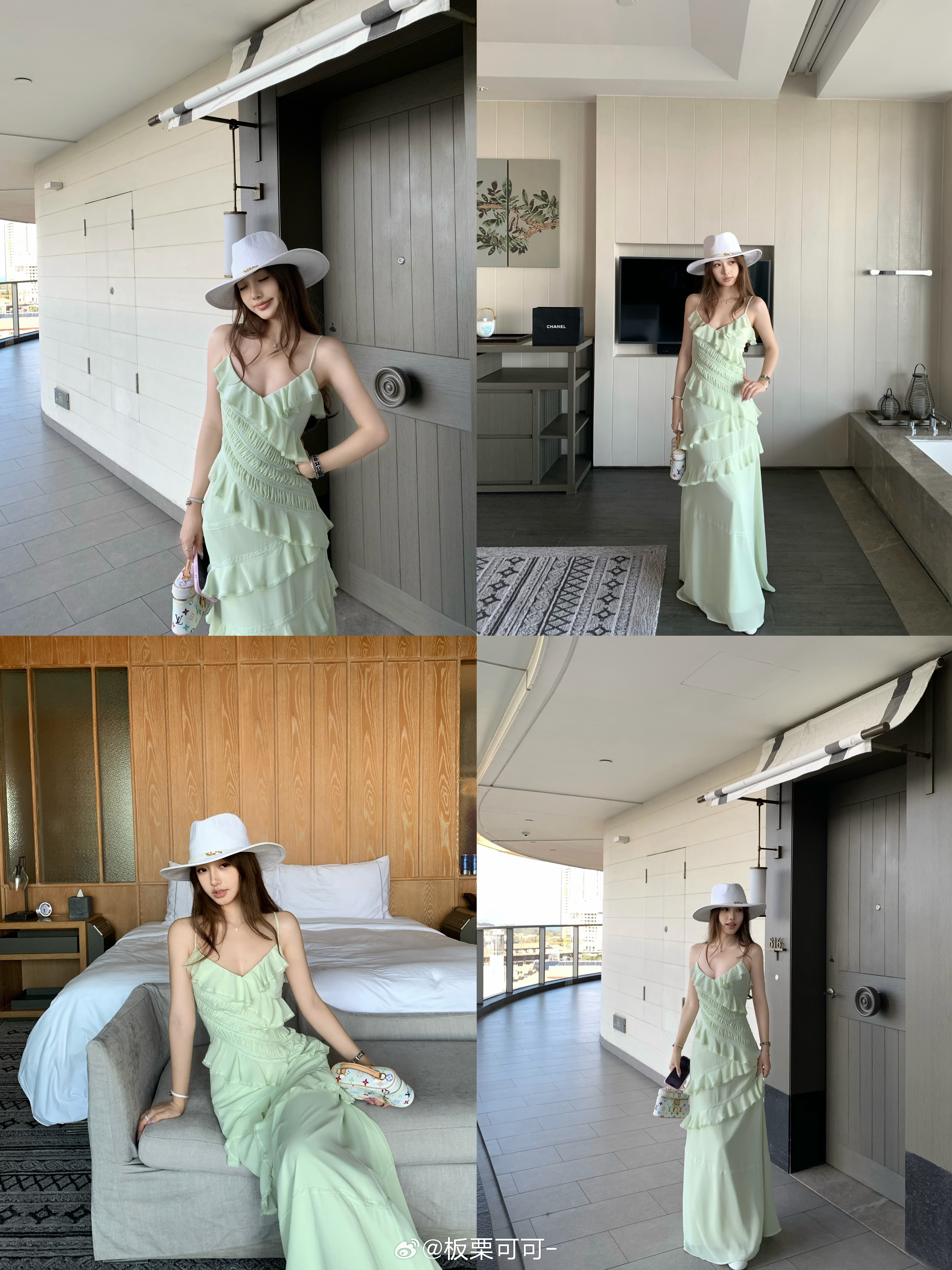 板栗可可Bankelili3/8/20:00👍🏻🍎揪2️⃣100⭕️⭕️~温柔系美感雪纺吊带长裙~大身不规则荷叶边设计 下摆走起路来步步生花🌸无论是度假约会或日常通勤搭配开衫都是仙女b备设计感连衣裙之选!!真的很适明媚和煦的春季!!💐