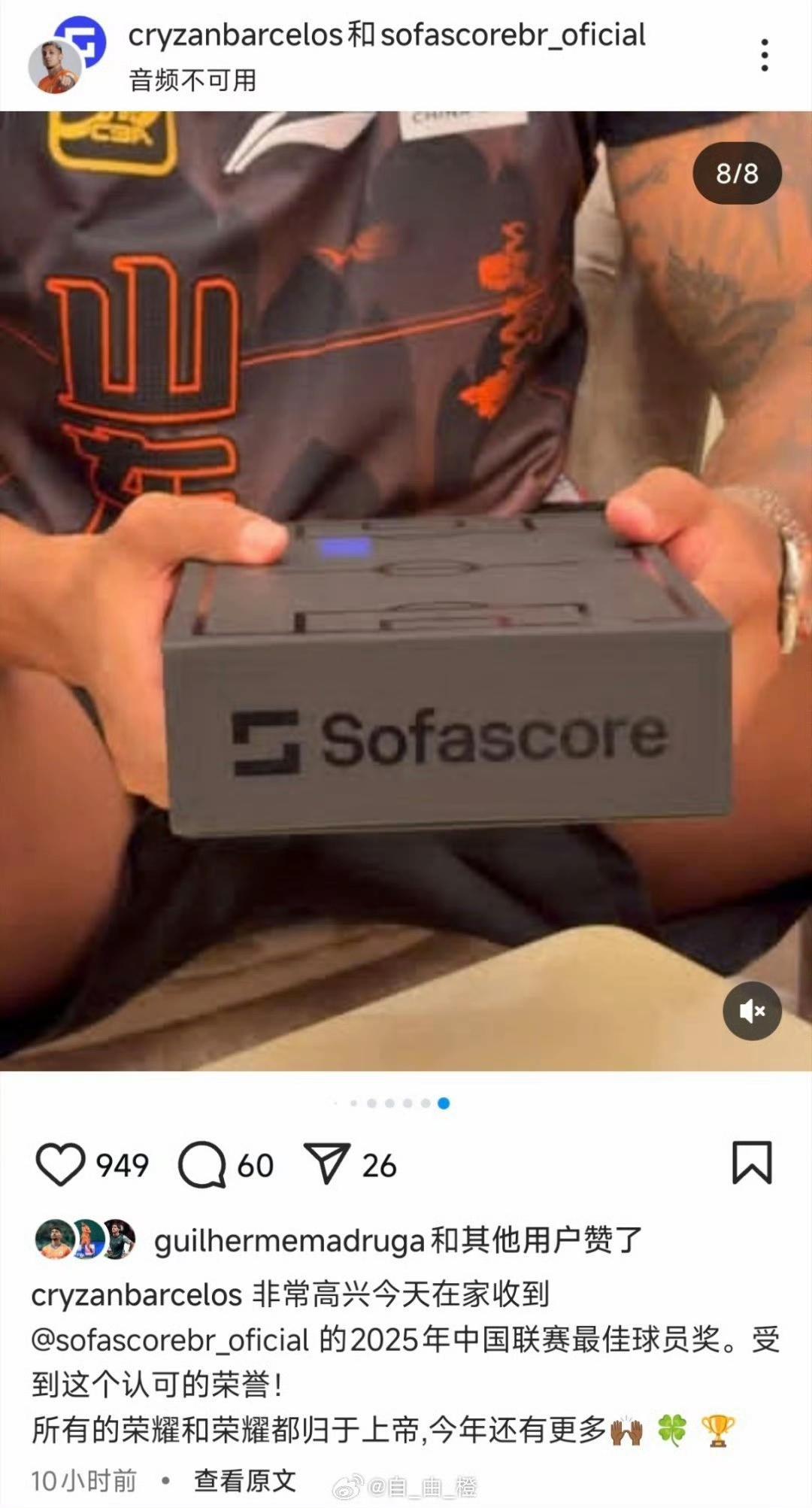 克雷桑获奖,身穿山东高速球衣社媒庆祝! 克雷桑更新社媒:克雷桑获Sofascore官方2025赛季中超联赛最佳球员。获得这个奖项,也算是对上赛季克雷桑的认可。 有没有了解的球迷,Sofascore是什么机构?球迷认可度怎么样?