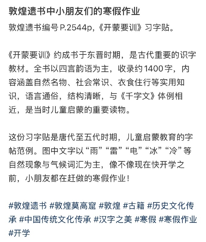 古代小朋友们的寒假作业