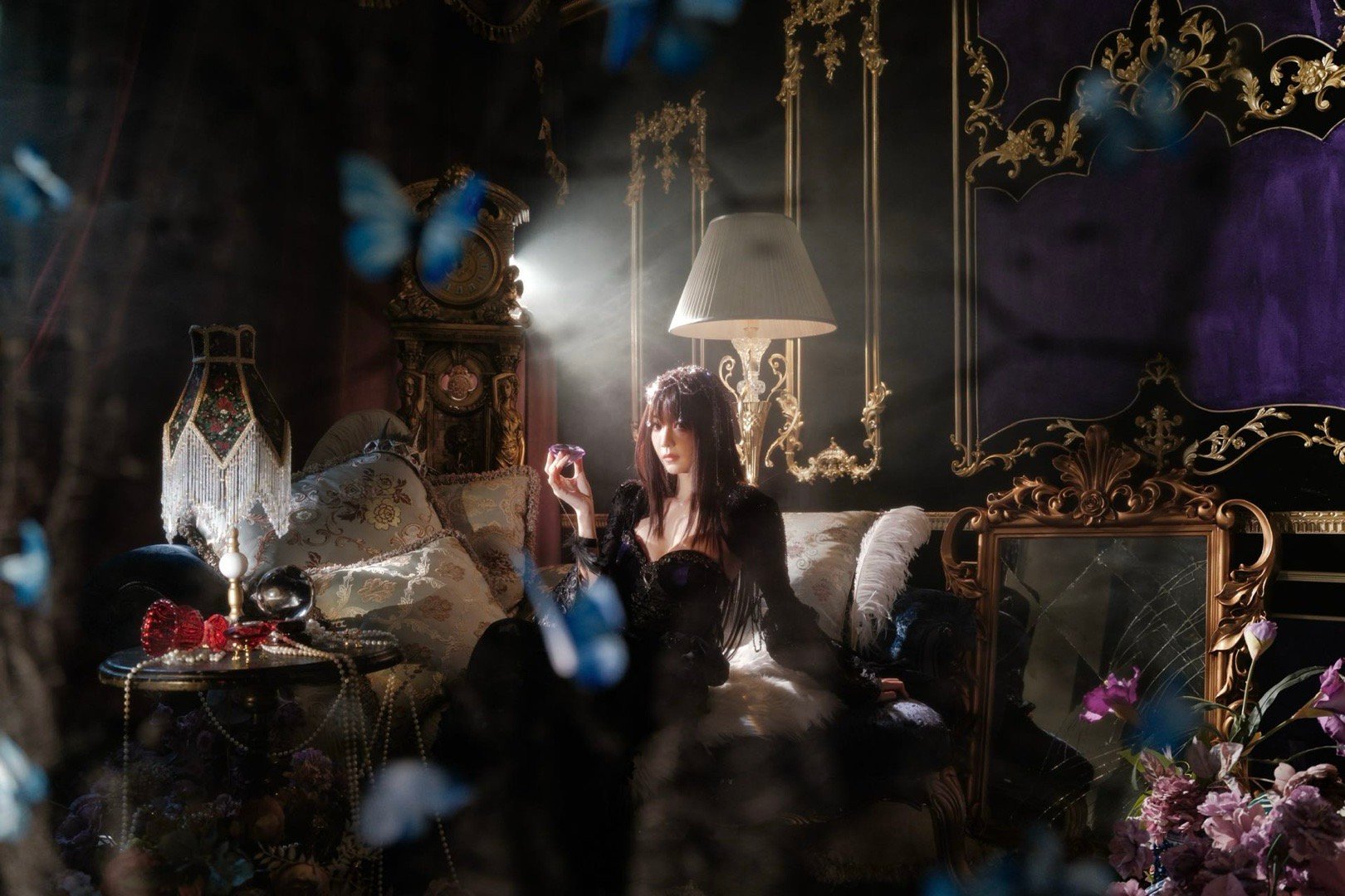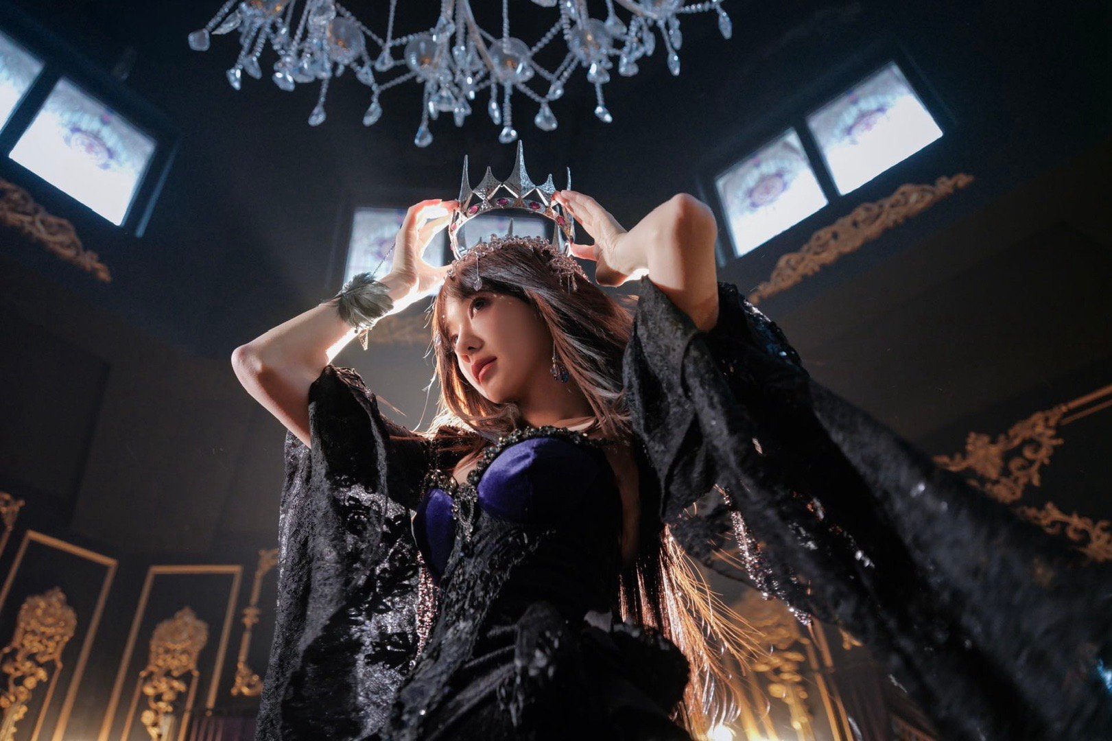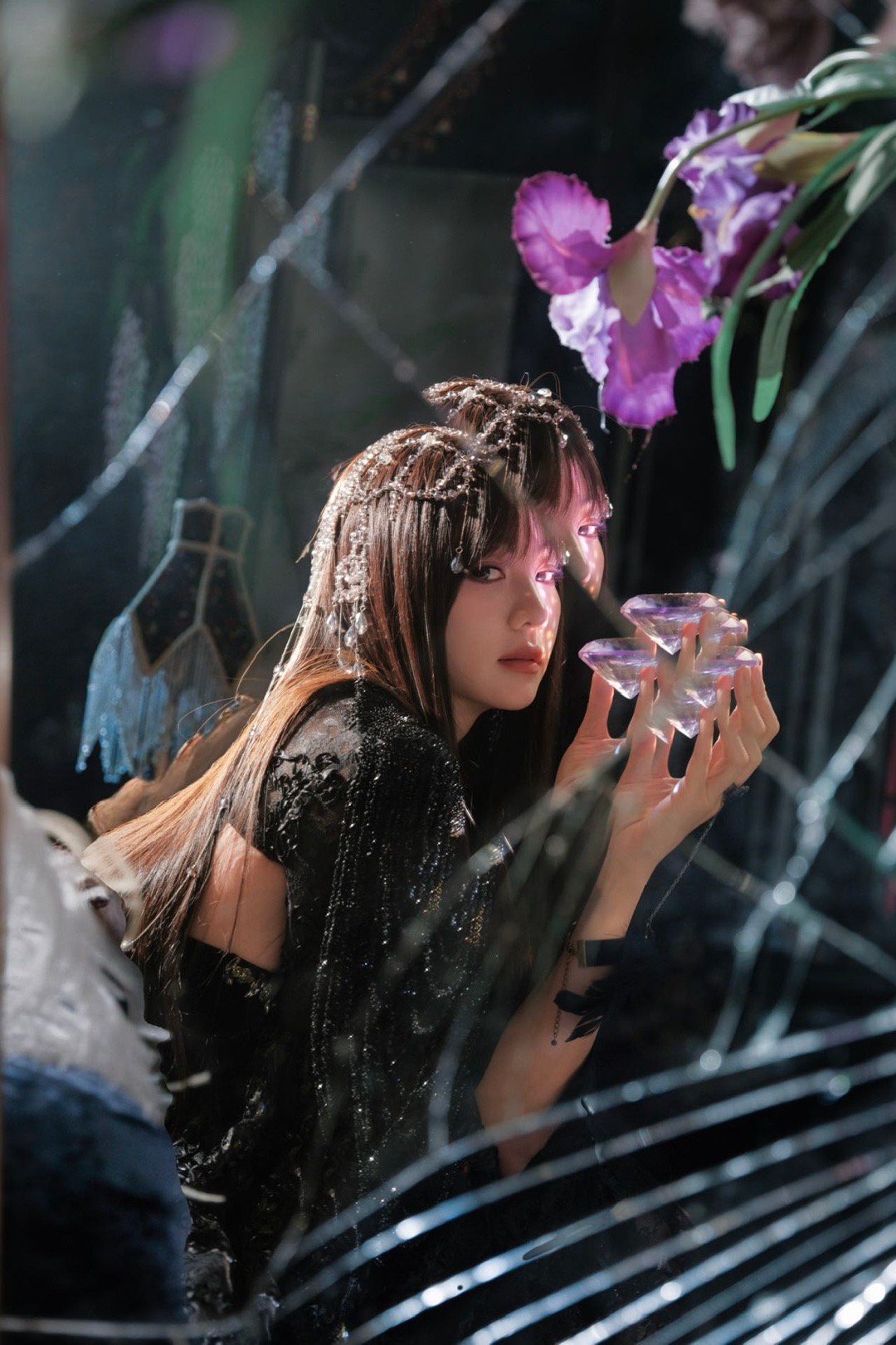 胡意旋小白花爆改黑玫瑰黑色蕾丝长裙配王冠,她站在那儿就像自带故事背景。小白花这