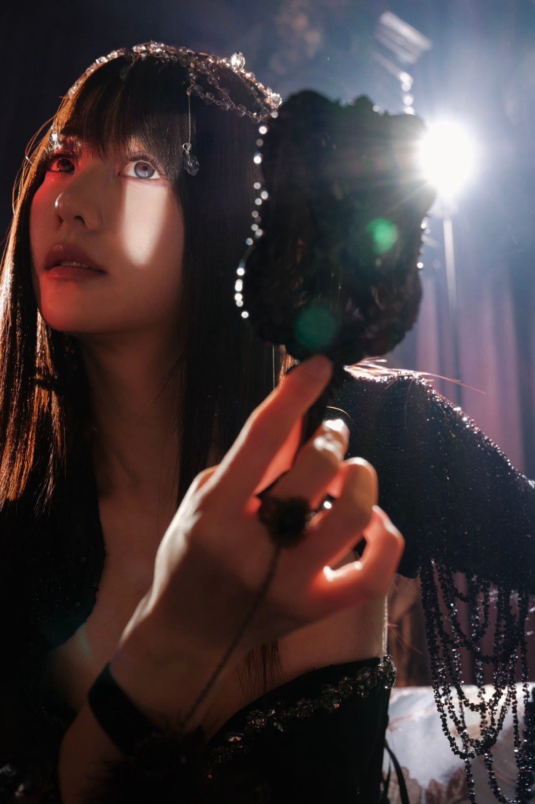 胡意旋小白花爆改黑玫瑰 黑色蕾丝长裙配王冠,她站在那儿就像自带故事背景。小白花这波变身,不是换造型是换气场。