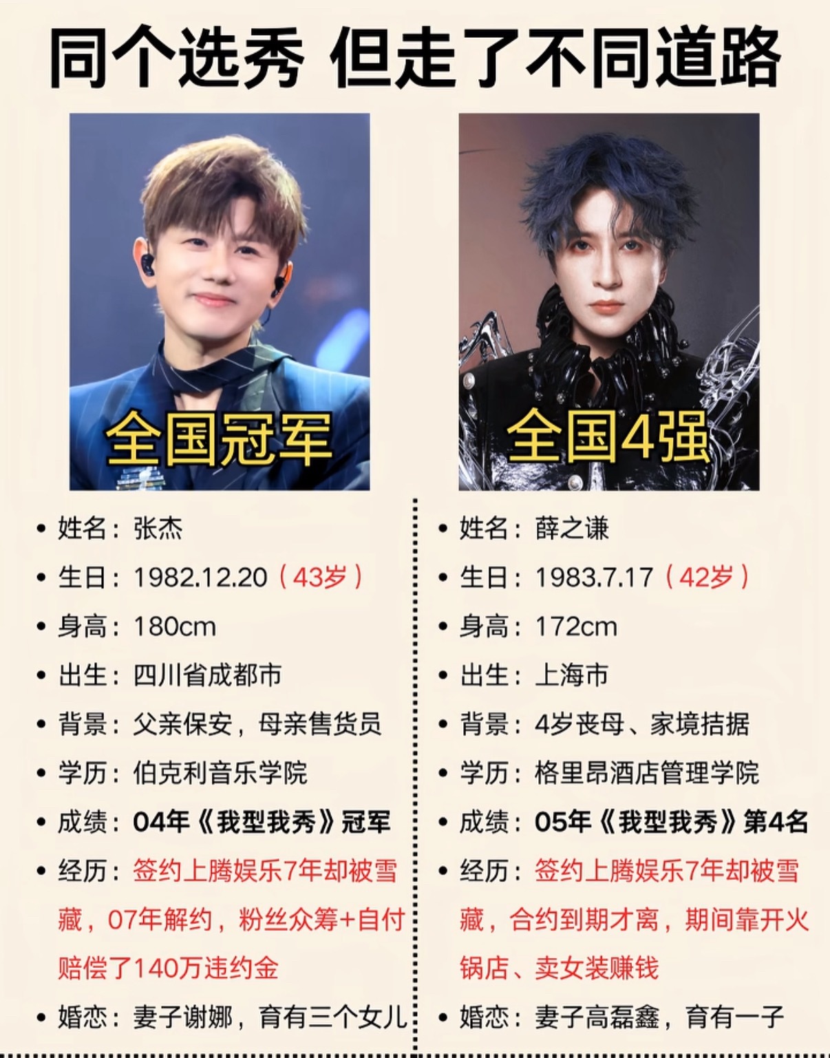 我第一次知道张杰和薛之谦是同一个选秀节目出来的,只不过一个是冠军,一个是第四名。