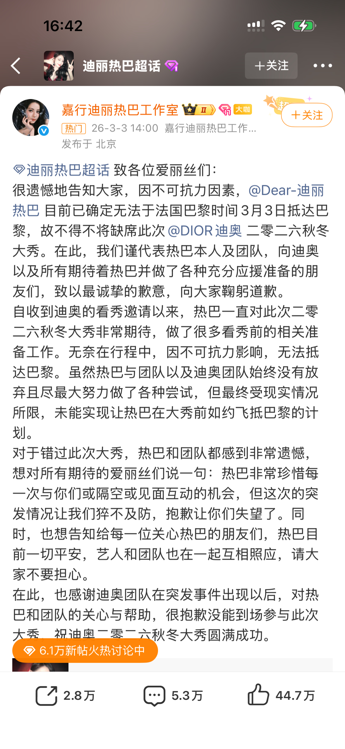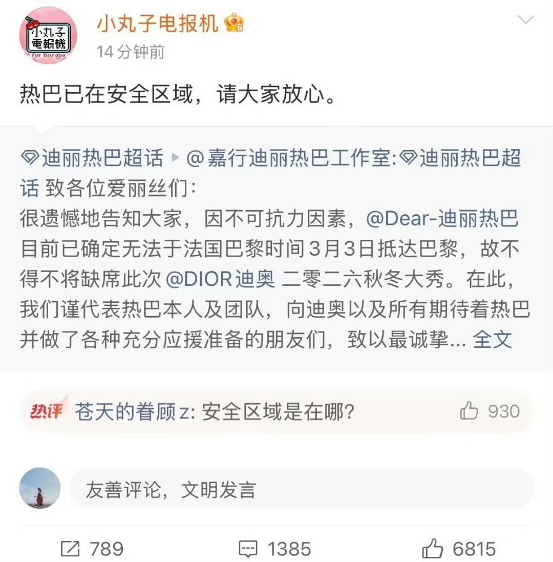 迪丽热巴 滞留迪拜 工作人员全员直飞巴黎,偏偏让热巴走中东危险中转,滞留战乱高危区超24小时,使馆都发预警了,这安排合理吗?不过刚刚也看到了下方其他网友的解释,都各执一词,只希望热巴平平安安的回来