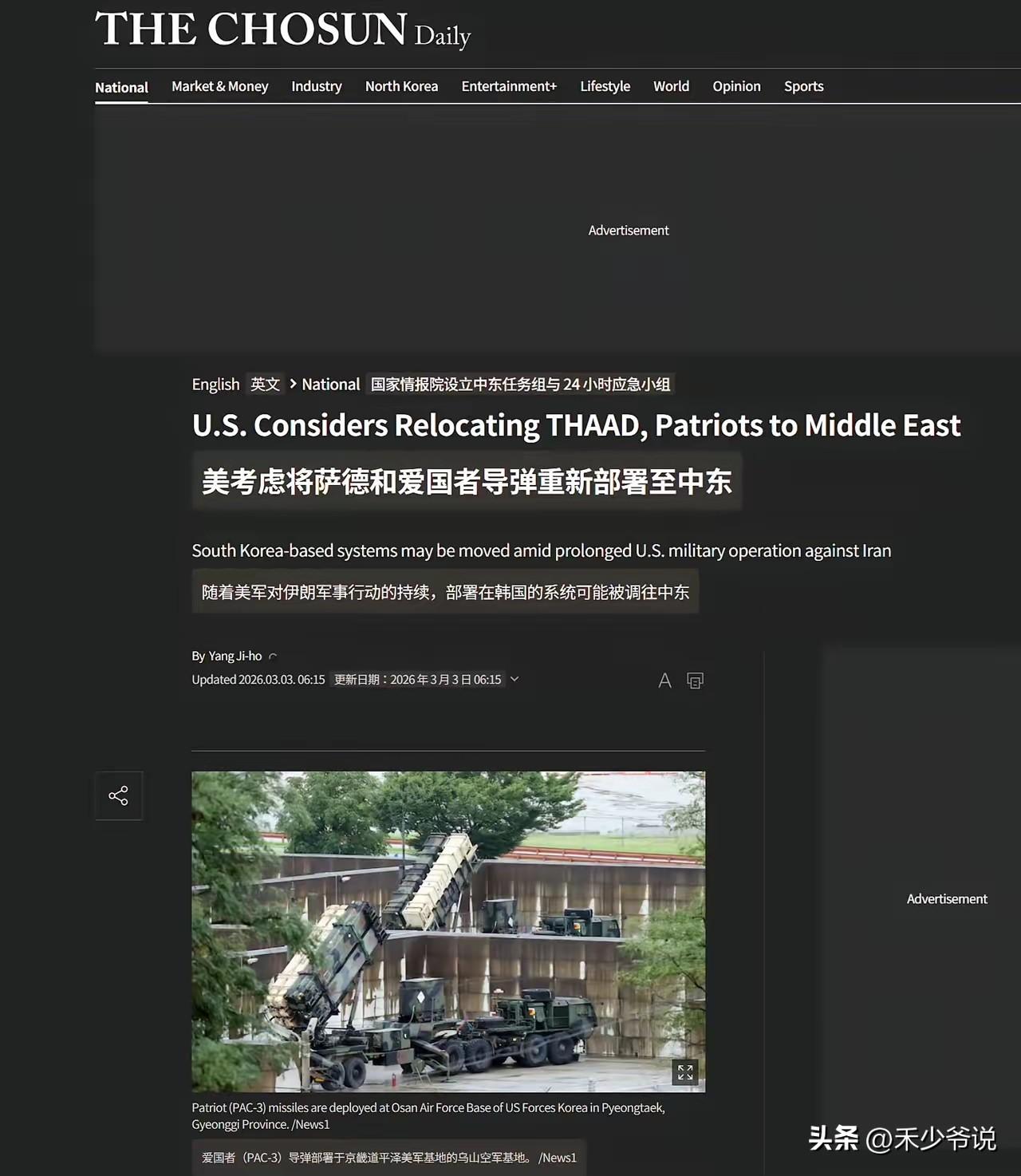 美国开始拆东墙补西墙,拆韩国萨德部署到中东 根据韩国《朝鲜日报》报道,美国正在考虑将部署于韩国军事基地的萨德防空系统和爱国者导弹等拆除后部署到中东地区。 才来打三天美国的防空系统和导弹就开始告急了,这种典型的拆东墙补西墙的做法已经预示了美国的外强中干。
