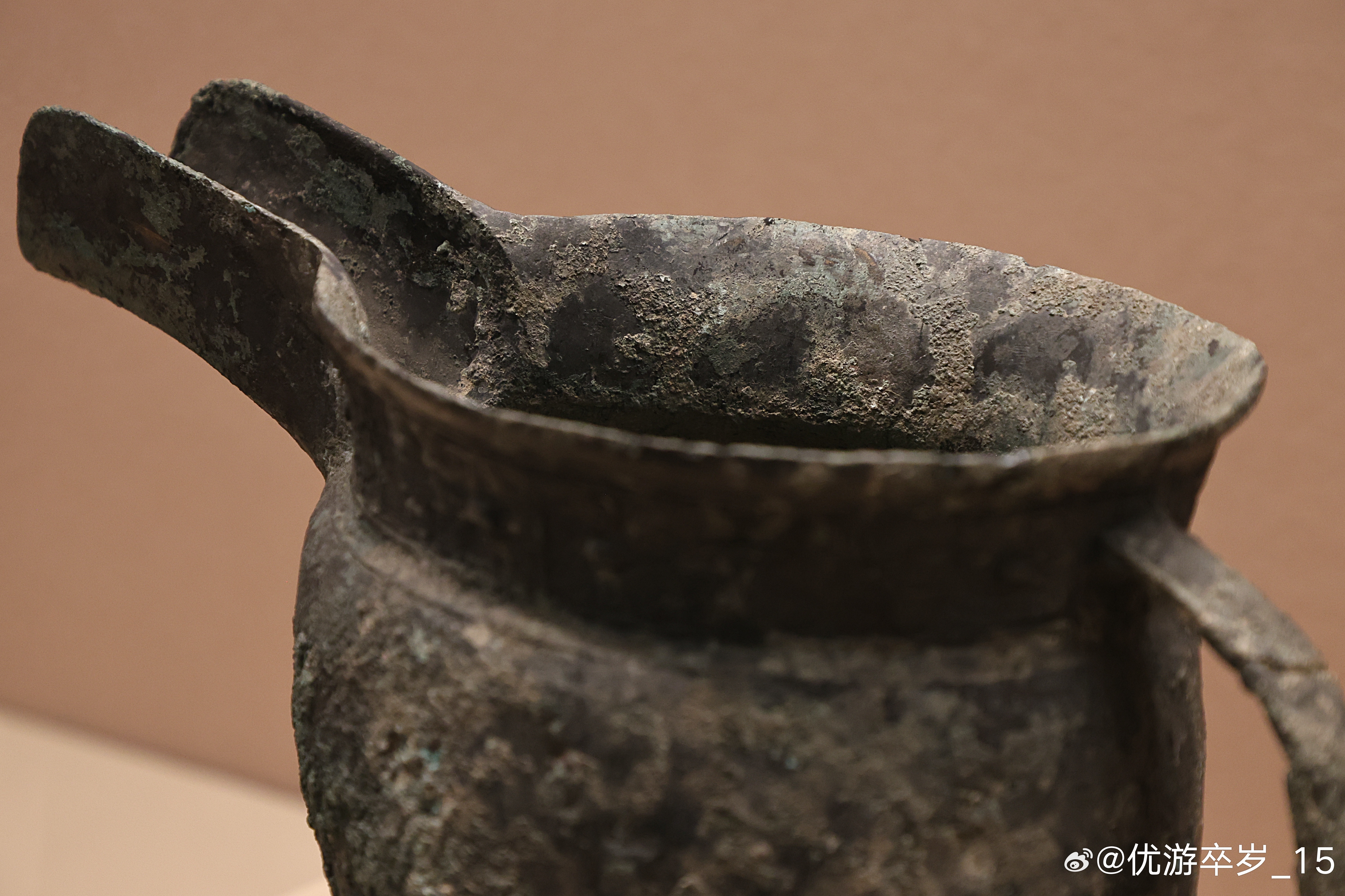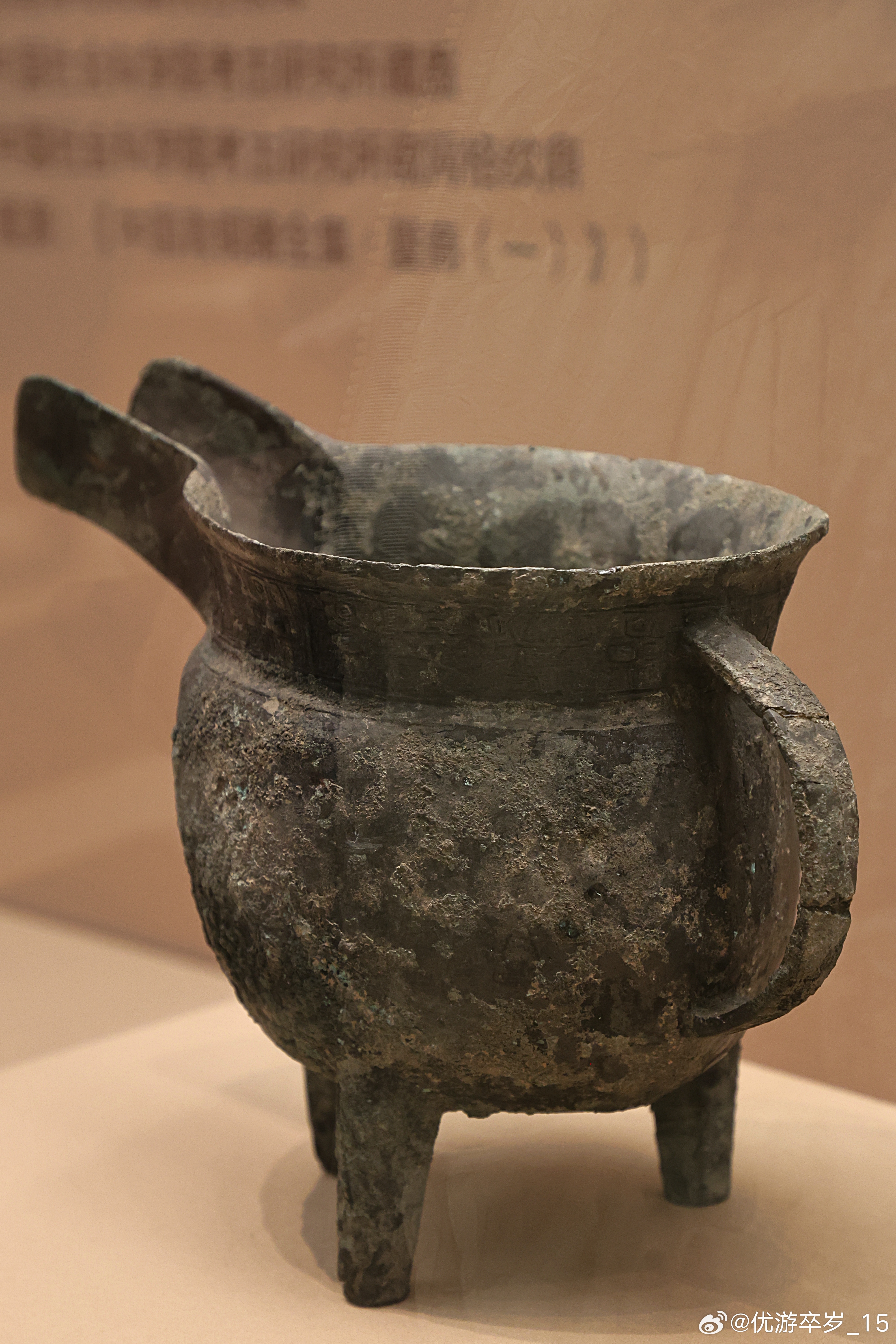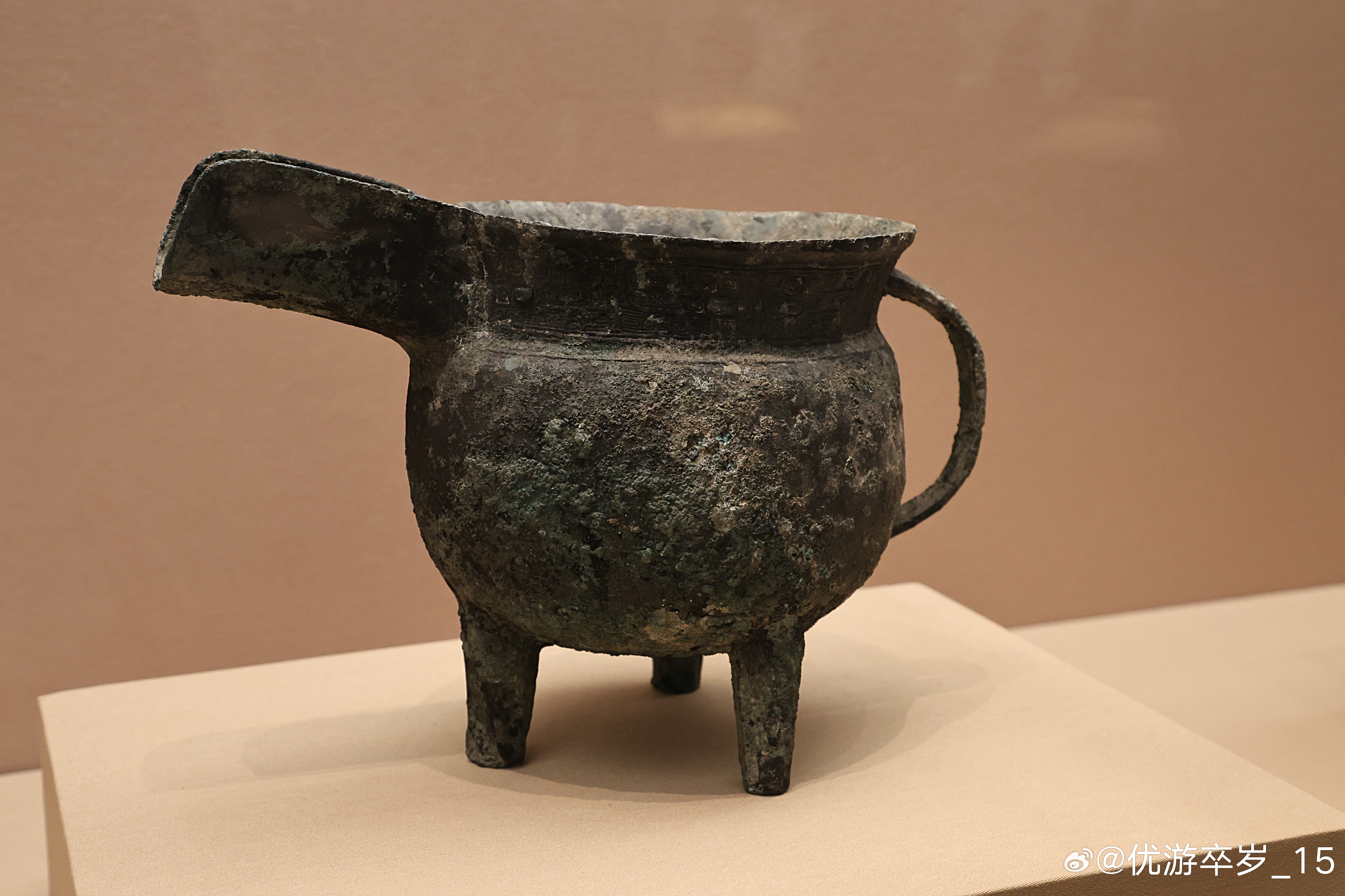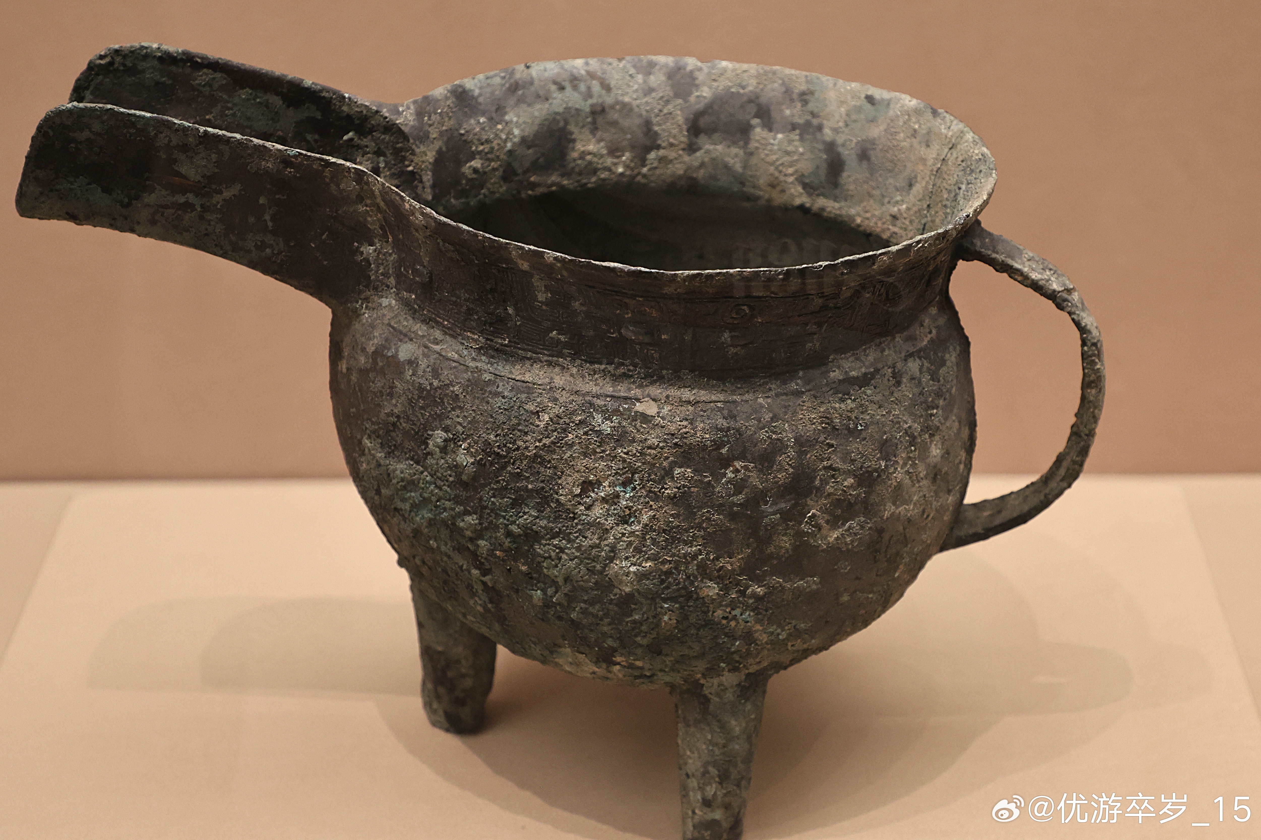 我的2026 【中国之中-中原古代文明精粹】 兽面纹带流鼎商 (公元前1600-前1046年)安阳博物馆藏拨交收藏。带流鼎在商周青铜器中极为罕见,目前出土仅数例,殷墟妇好墓有形制相近者。此器融煮烧、倾注、持握功能于一体,非普通炊器。清华大学艺术博物馆展出2026.2.8约会博物馆文物