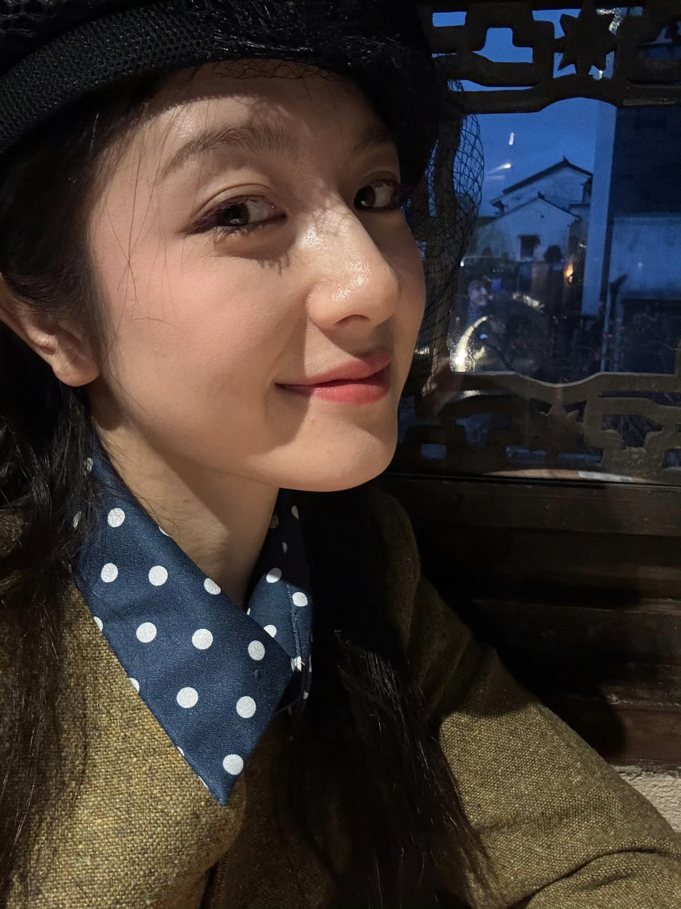 李兰迪这一身好有民国大小姐那味,吃个汤圆都那么可爱