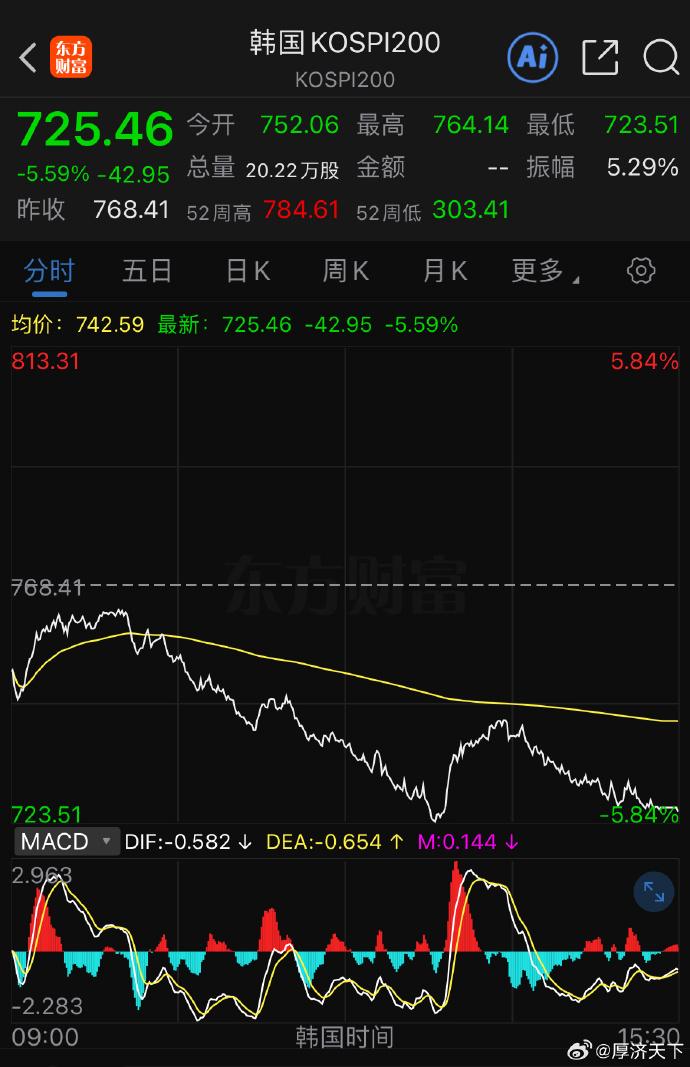 绝了! 3.3韩国股市暴跌熔断,全球市场吓出冷汗 今天韩国指数直接狂跌超5%触发熔断,日本股市也大跌超1400点,亚太市场全线飘绿。说白了,中东一乱,资金先跑,避险情绪拉满,风险资产全躺平。 别以为和咱们没关系,外围不稳,大A也跟着承压,赚钱效应直接归零。 金句:地缘一上火,股市先感冒,散户最受伤。 股市点评:短期谨慎为主,别乱抄底,等外围企稳再动手。 股市熔断