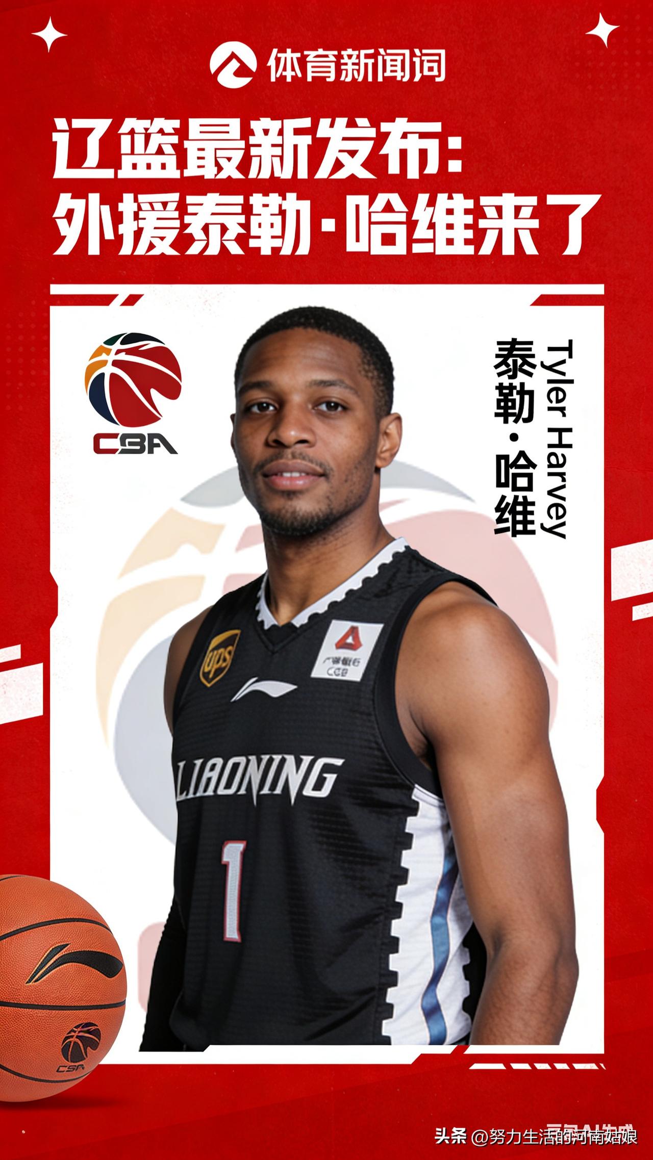 辽篮官宣!泰勒·哈维来了,外线火力直接拉满🔥 辽篮最新消息:外援泰勒·哈维正式加盟,身披11号球衣! 打过CBA,三分准、能得分,还曾绝杀过广东,经验足、即战力强。 来了就能用,专门补强外线,帮继伟减压,提升进攻火力。 简单说:能投、能突、能关键球。 辽篮冲战绩,这下更有底气了! 坐等上场,看他大显身手! 辽篮最新发布:外援泰勒·哈维来了 辽宁男篮 辽篮 泰勒哈维 CBA 图片由AI生成