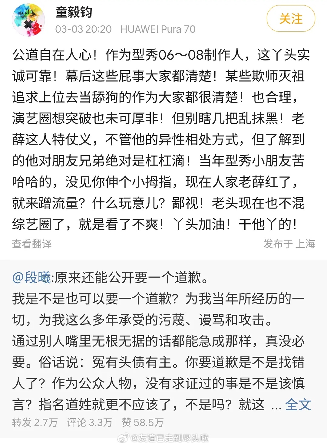 每个出来锤张杰的都得先夸一句:薛之谦特别重情重义!张杰回应张杰前女友力挺薛之谦