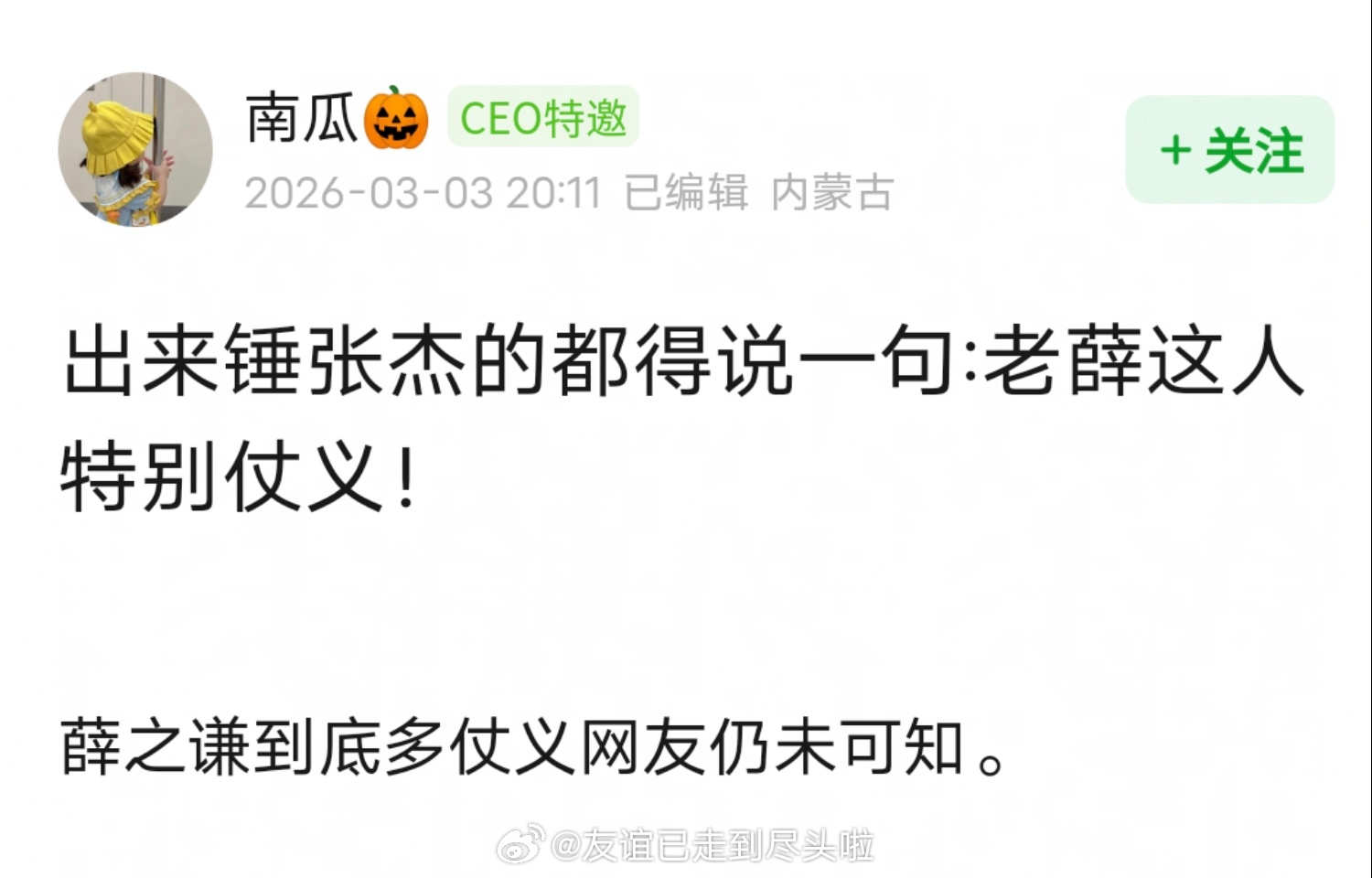 每个出来锤张杰的都得先夸一句:薛之谦特别重情重义!张杰回应 张杰前女友力挺薛之谦张杰前女友 被出轨是事实