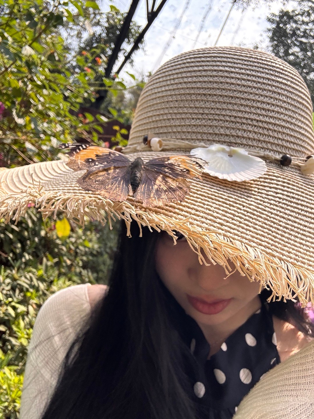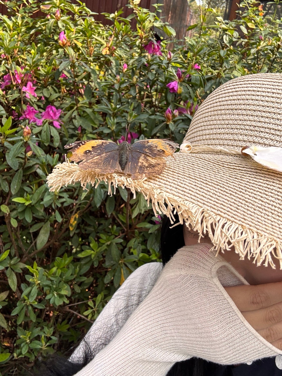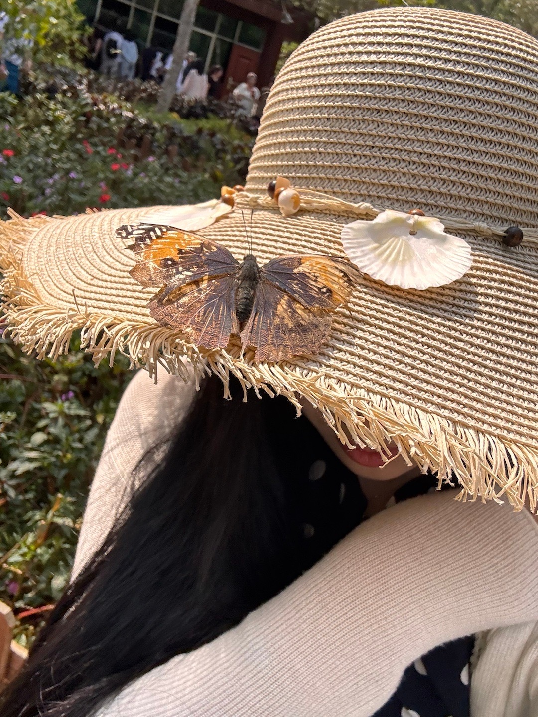而且今天有一只枯叶蝶停在我的帽子上!