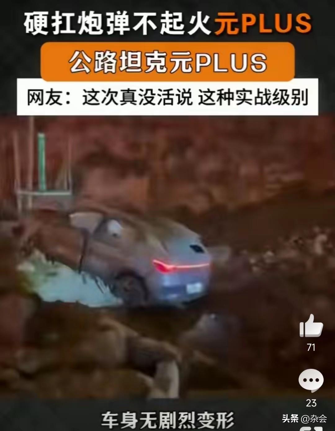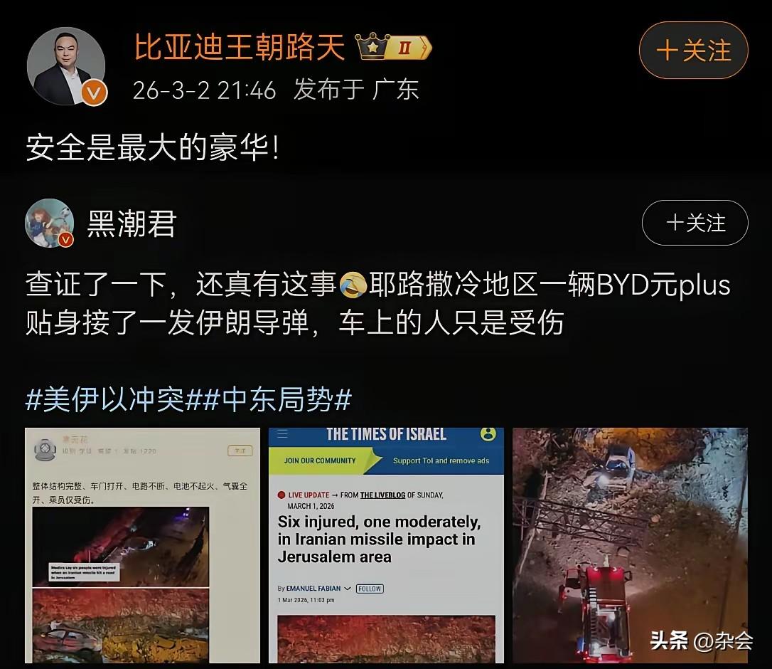 战火中的比亚迪,这质量是真实在线!挨了导弹都没变形,双闪还亮着,这是在用生命诠释‘皮实耐造’啊。到底是车主运气爆棚,还是比亚迪真的练成了‘金钟罩’?建议厂家给这位车主终身免费保养,这广告效应没谁了!