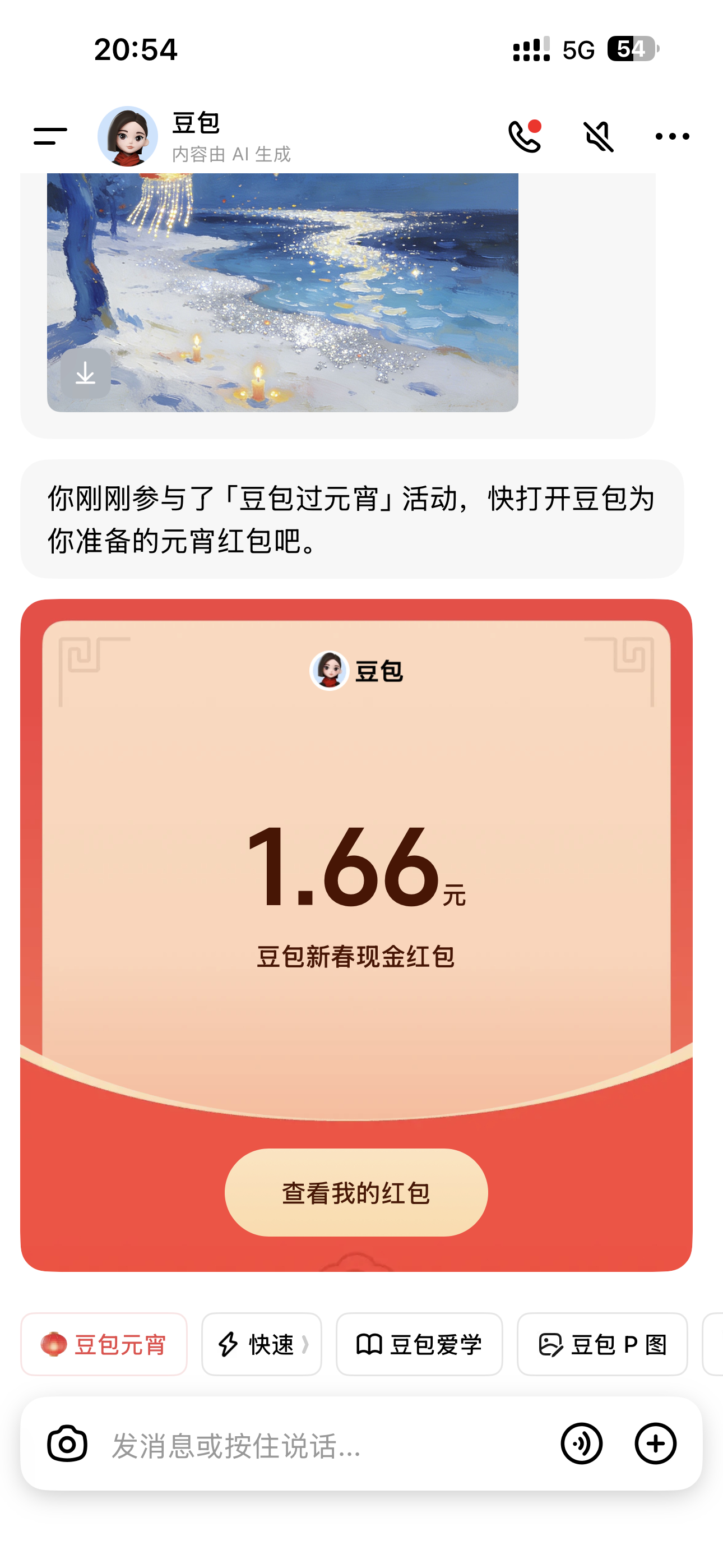 豆包红包元宵红包元宵节红包 感谢豆包送来的仨瓜俩枣