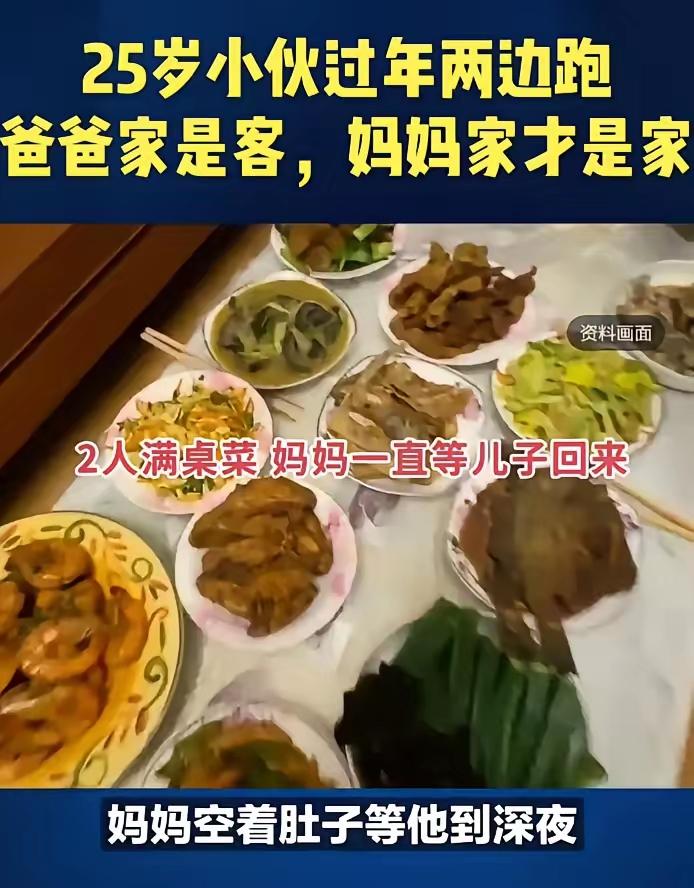 山东一25岁小伙爸妈离婚好多年了,今年过年他想着两边都得去看看,就先去的爸爸家。进门的时候,继母从柜子里翻出一双一次性拖鞋,塑封都没拆,递过来笑着说:“家里没准备你的鞋,凑合穿吧。”那语气客气得跟招待串门的邻居似的。 他愣了下,也没说啥,换上鞋进去了。 年夜饭桌上,爸爸和继母倒是热情,一个劲给他夹菜。但问的话全是“今年年终奖发了多少”“有对象没”“啥时候结婚”。 吃着吃着,门铃响了,进来个陌生女孩,继母赶紧介绍说是远房亲戚家的闺女,正好过来一起吃饭。这哥们瞬间明白了,这是给他安排相亲呢。 他坐在那儿浑身不自在,跟那女孩也没什么话聊,硬撑了不到三个小时,实在待不下去了,借口“明天还得上班”就跑了。 从爸爸家出来,他骑着车往妈妈家赶。到妈妈楼下的时候都快夜里十一点了,抬头一看,楼上还亮着灯光。他上楼敲门,门一开,眼眶直接就热了。 鞋架上,他那双旧棉拖摆得整整齐齐,就在最显眼的位置。客厅餐桌上,油焖大虾、可乐鸡翅、清炒油菜、糖醋里脊,全是他爱吃的,连酱骨头都给他备着了。 他妈听见动静从厨房探出头,笑着说:“回来啦?饿坏了吧,饺子马上好。” 他进厨房帮忙,他妈拍着他后背说:“知道你下午去那边,我寻思着怎么也得到半夜才能过来,就一直等着,菜都热两遍了。”他说妈你咋不先吃,他妈说:“一个人吃没意思,等你一块吃。” 俩人就在厨房忙活起来,他揉面,他妈擀皮,有一搭没一搭聊着。他讲单位那点破事,他妈说广场舞队伍里谁跟谁又闹别扭了。包好的饺子下锅,咕嘟咕嘟冒着热气,香味飘得满屋都是。 他后来发朋友圈说:在爸爸家那三个小时,感觉自己像个来串门的远房亲戚。可在妈妈这儿,连拖鞋都知道我回来了。 有不少网友表示:“说实话继母没做错什么,人家客气礼貌招待你了。但就是这种客气,才最让人难受。真正的家人之间是不需要客气的。” 也有被感动的网友:“最戳我的是那句‘你回来啦’,不是‘你怎么来了’,也不是‘这么晚才到’,就是‘回来啦’。” 我是觉得最扎心的不是继母有多刻薄,而是那种“被当成外人”的感觉太真实了。人家对你客客气气,周到礼貌,挑不出毛病,但你就是知道——这儿已经不是你家了。 可能这就是亲情吧,不是户口本上那行字,不是血缘关系那张纸,是那些特别小特别碎的事:是记得你不吃香菜,是给你留着那双旧拖鞋,是深夜等你回来才开饭,是你进门那一刻说的“回来啦”而不是“你怎么来了”。 那双一次性拖鞋和那双旧棉拖,差的不是材质,是“你在这住一晚就走”和“这儿永远是你家”。 希望每个在亲情里两头跑的娃,都能找到那个永远给你留着拖鞋的人。 你们觉得呢?是那种客客气气的招待让你难受,还是这种理所当然的亲近更戳你?