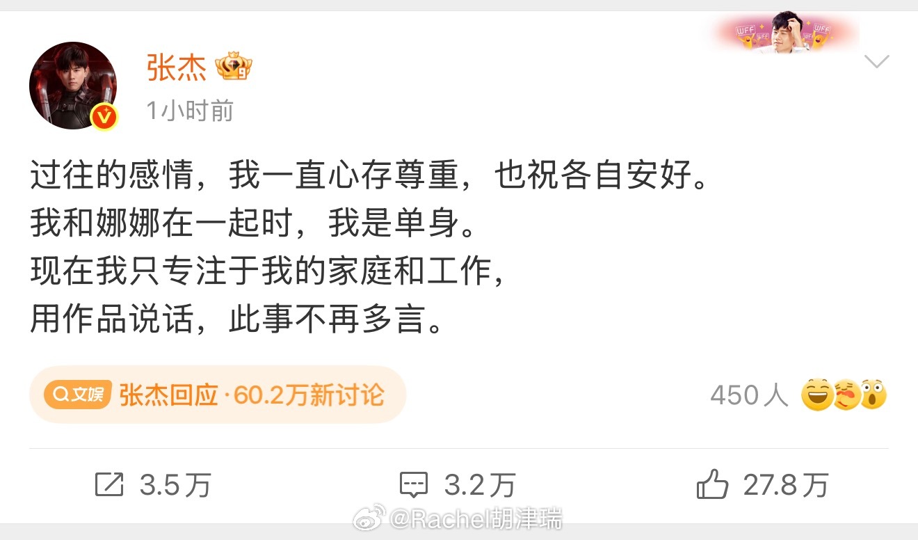 张杰回应今年元宵的瓜有点多。张杰的回应简短有力,既表达了态度,也划清了界限。是非曲直难定论,还是专注作品与生活吧。