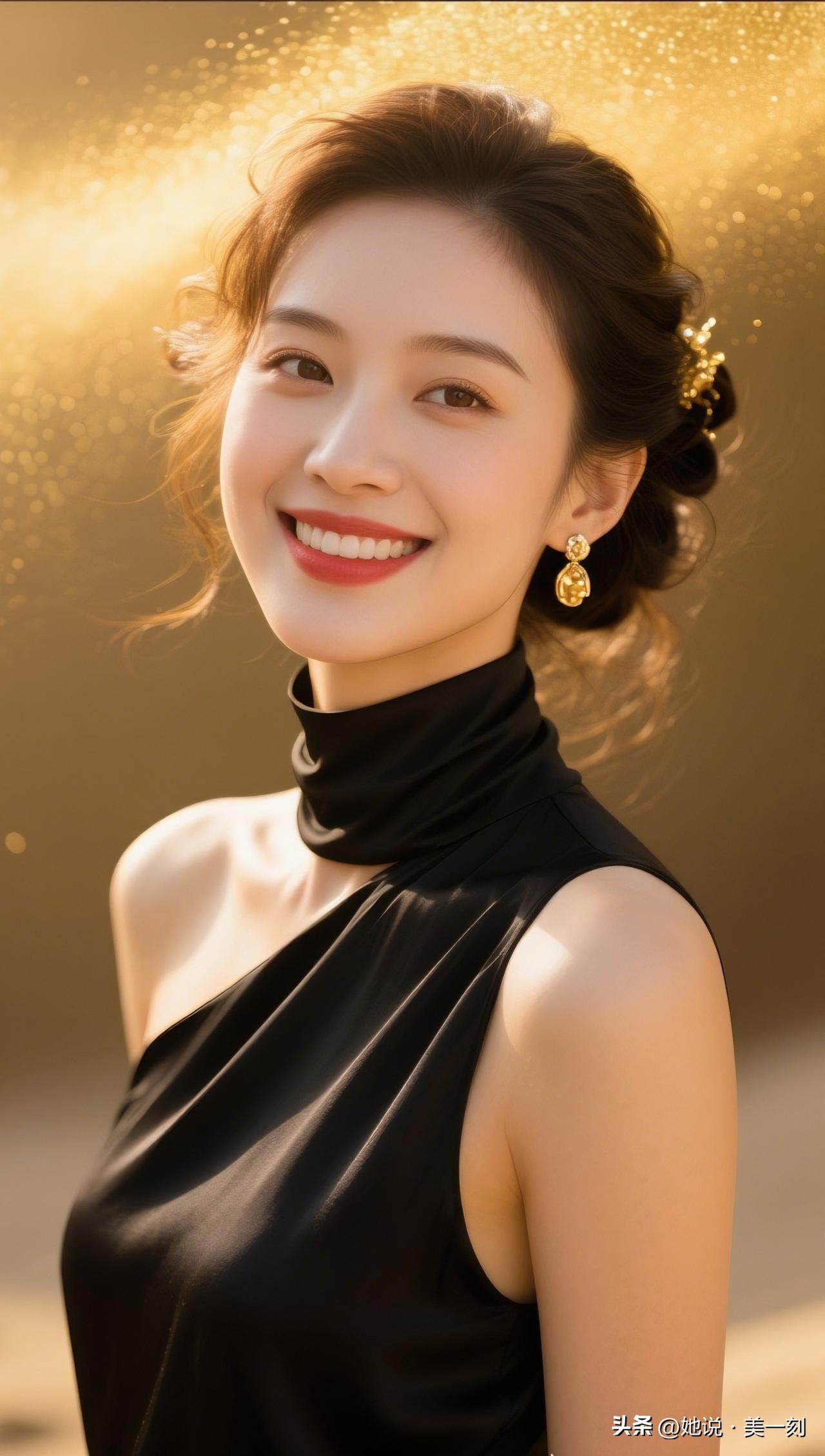 优雅黑裙,闪耀耳环,自信微笑,女神范儿满满!💃✨甜妹的笑容有多治愈
