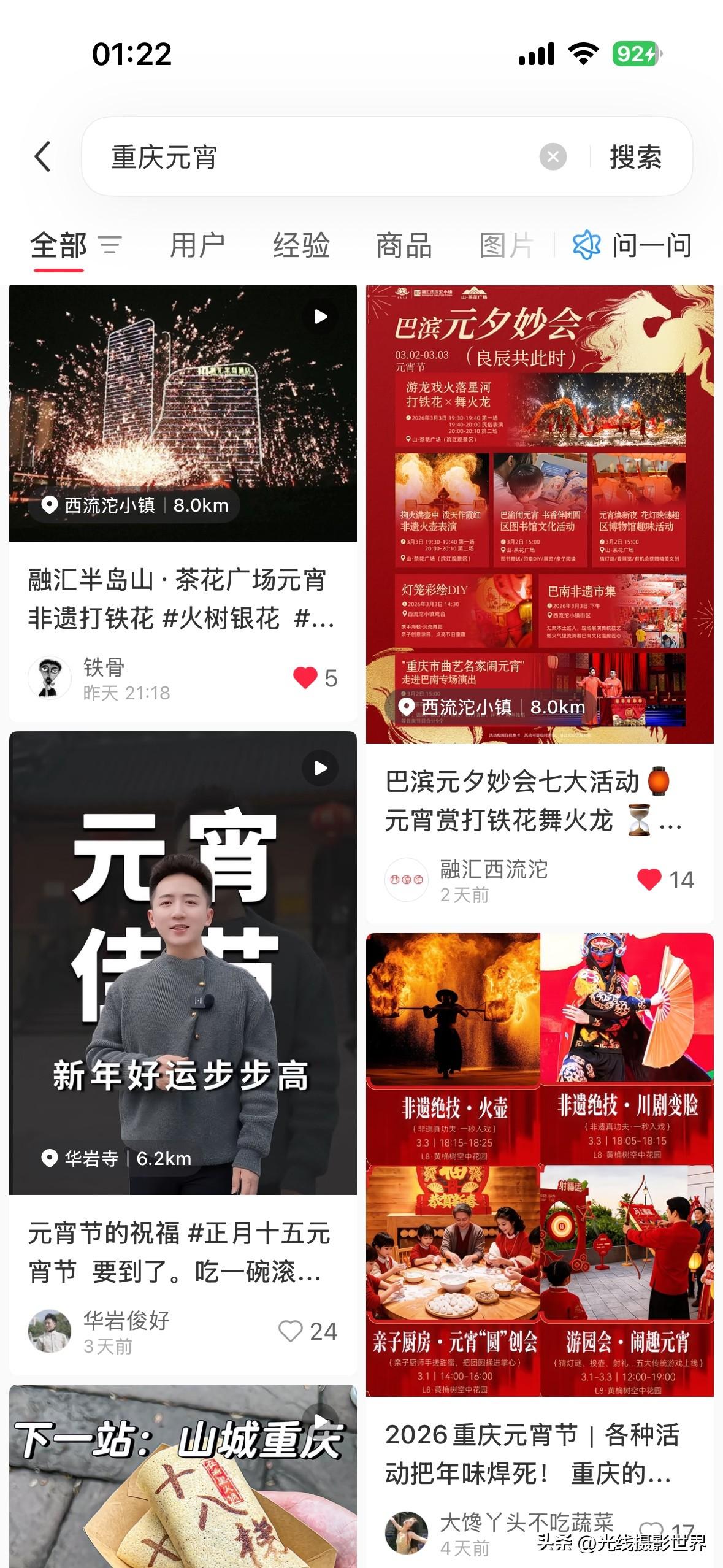 3月3日,元宵节的大重庆,哪里节日气氛最浓?!铜梁区大巡游,江津区白沙古镇大巡游和舞火龙……巴南区茶花广场舞火龙打铁水……山城巷的天灯放飞孔明灯……长嘉汇弹子石的元宵节重庆无人机灯光秀……秀山梅江闹元宵……好像就这些吧?!黔江,万盛,巡游也很不错啊! 嗯,3月2日,正月十四,重庆璧山的火把节……南充的送蛴蟆……也都还是很火! 2026年春节,终于结束啦! 2026年春节,从腊八节到元宵节,最丰富多彩的还是四川省南充市的阆中古城…… 2026年春节,宜宾,泸州,隆昌,德阳,乐山……都冒出来很多新鲜的或者更大规模的节日气氛,值得表扬!说不定,明年春节,川渝两地,更多地方会内卷节日气氛,整出更多花活! 3月3日,元宵节,四川泸州分水岭的炸火龙……泸县的舞龙大巡游,德阳大巡游……阆中古城闹元宵……都还是不错的! 好吧,大家觉得呢?!