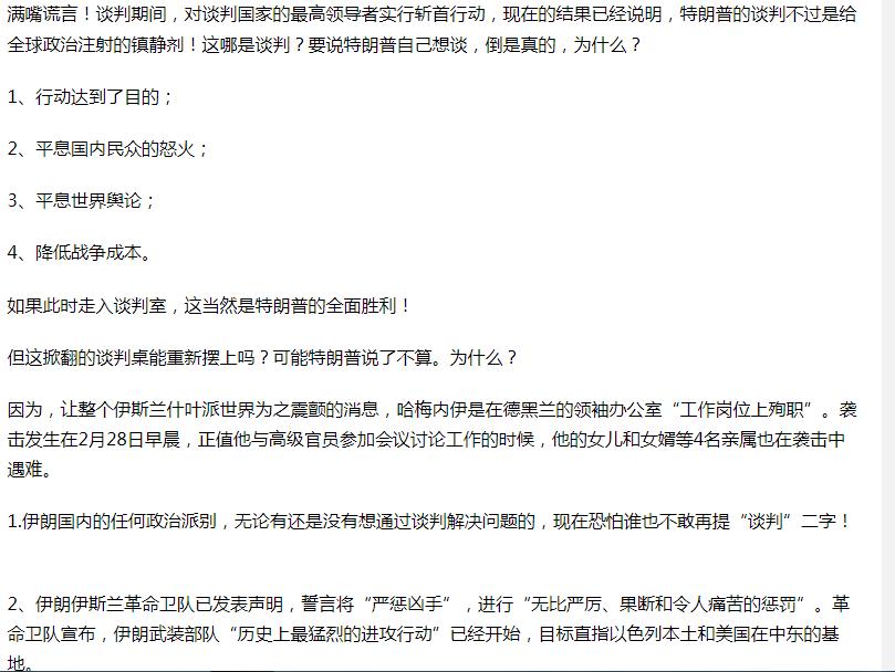 “特朗普说:伊朗新领导层希望恢复谈判,我同意了”你信吗?