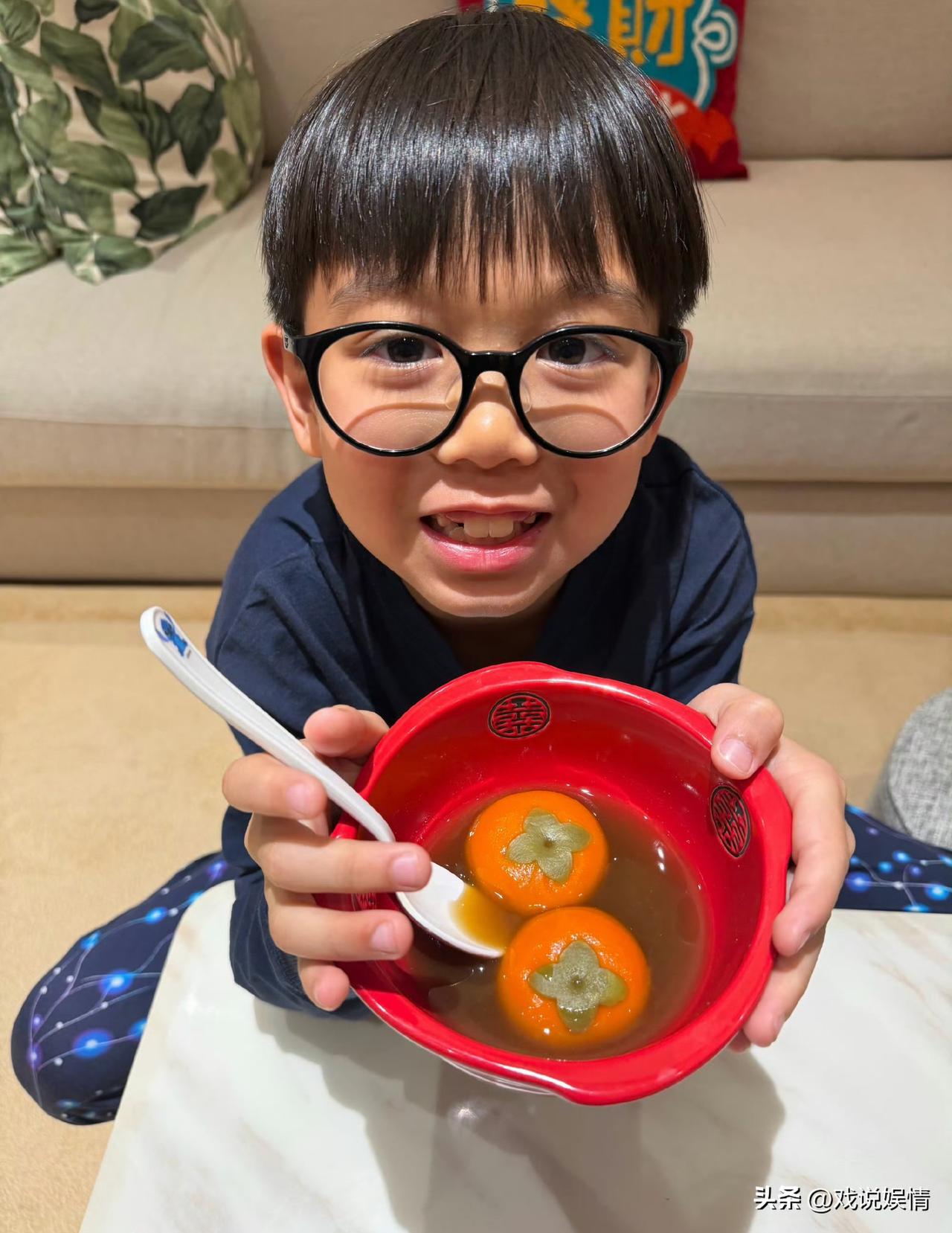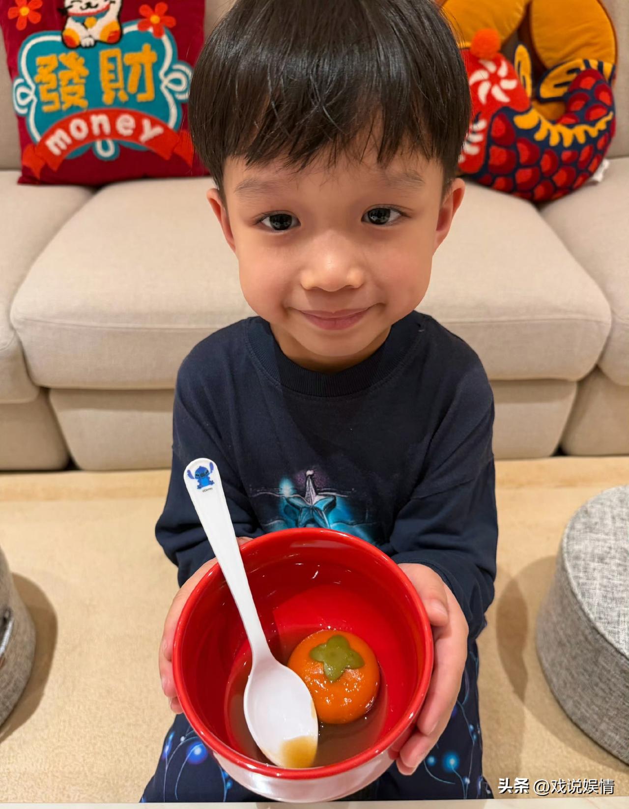 胡杏儿真会端水,三个儿子连碗都一模一样! 3月3日,胡杏儿分享了和一个儿子一起吃
