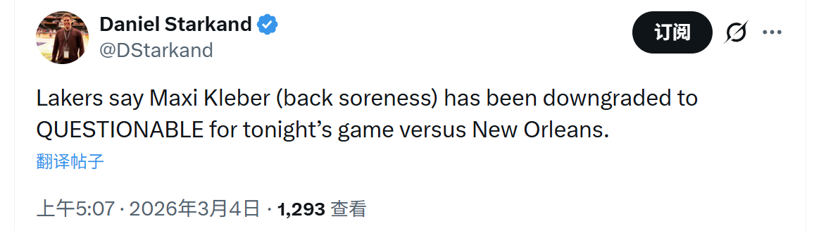 DPOY可乐杯背部酸痛今天出战成疑。