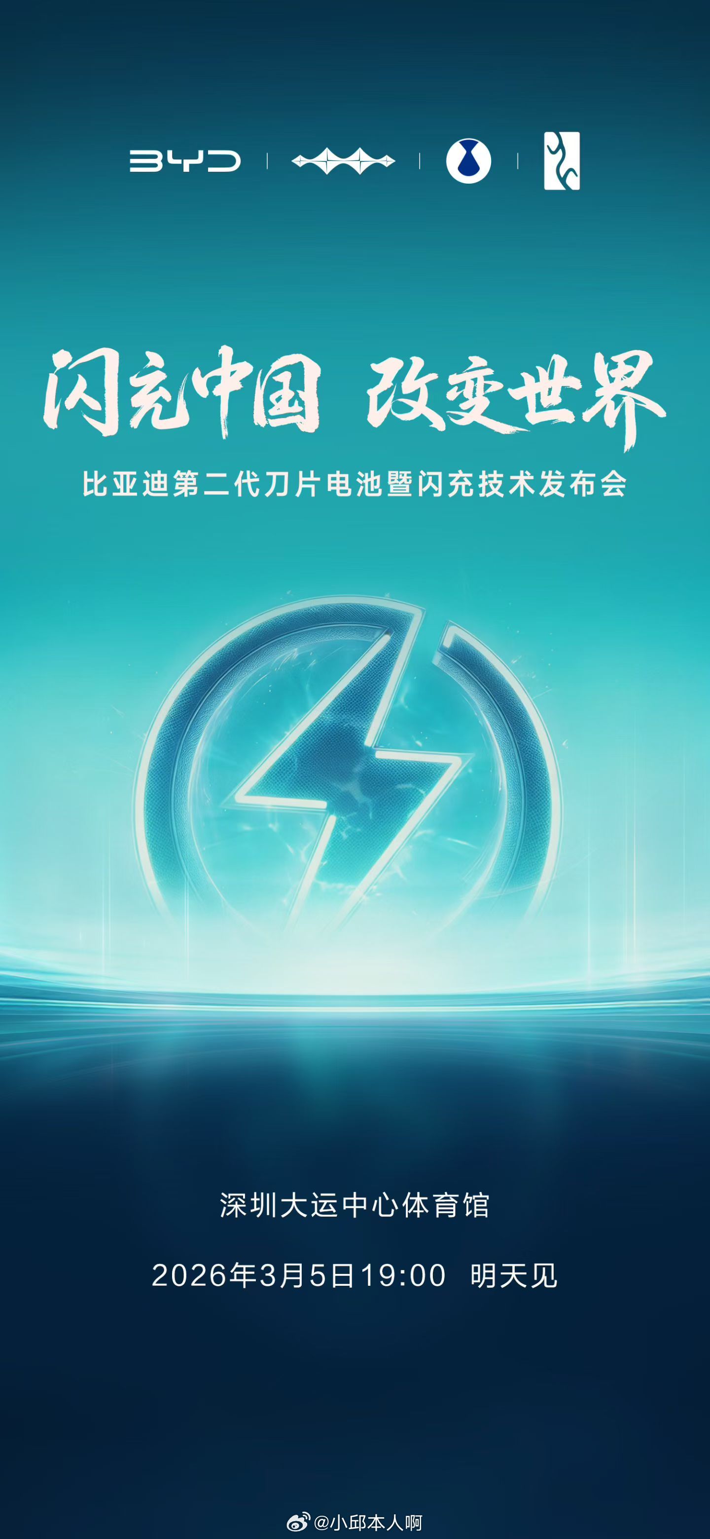 比亚迪第二代刀片电池及闪充技术将再一次,用技术改变世界3月5日19:00 ,敬请关注!比亚迪第二代刀片电池