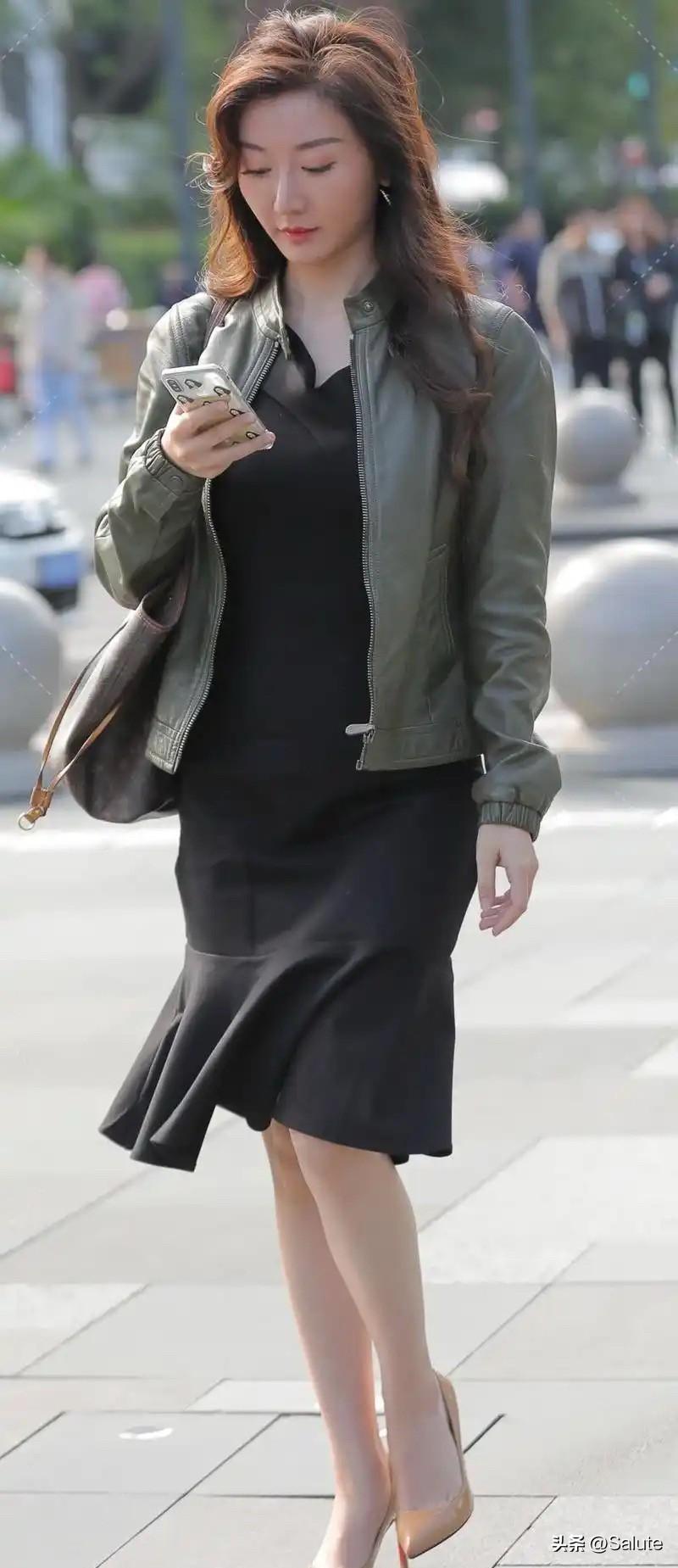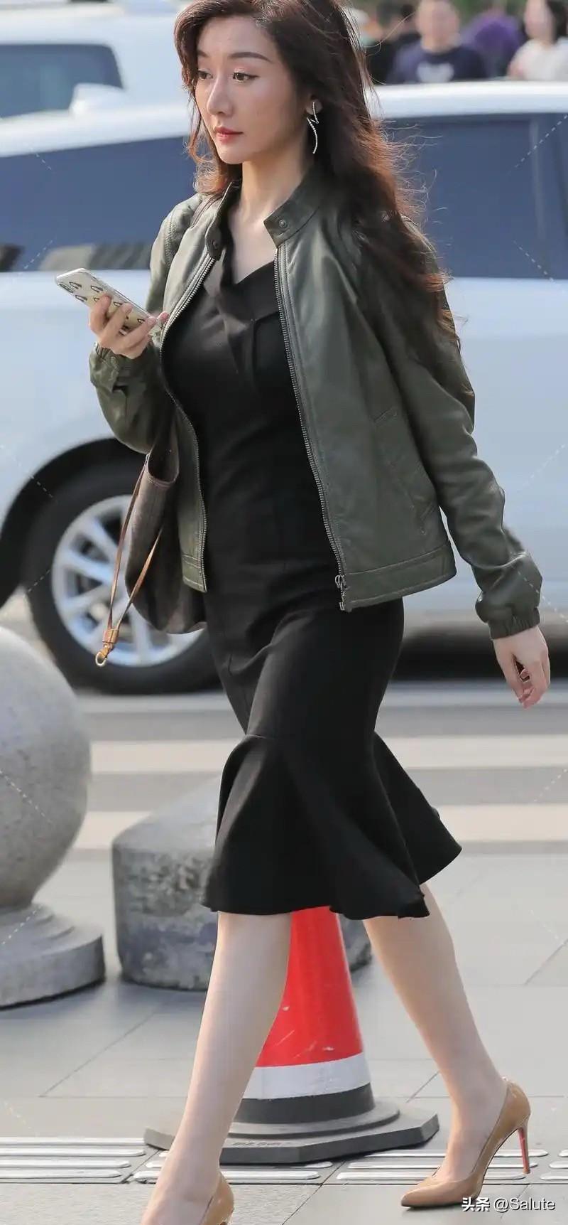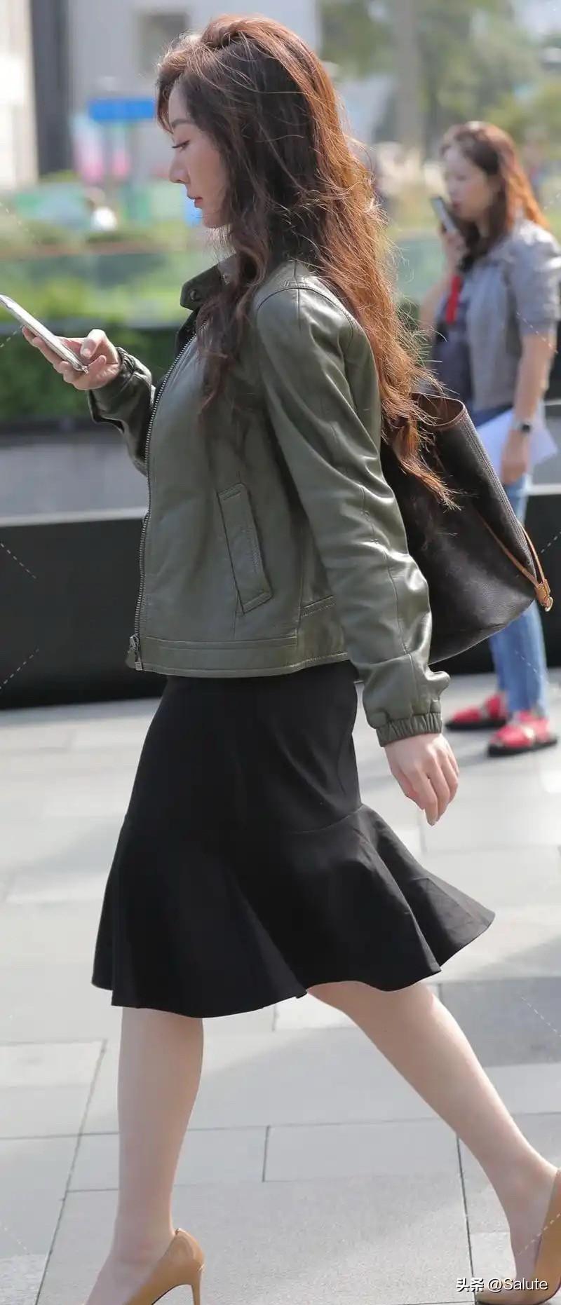 黑裙,皮衣,裸色高跟鞋[赞][赞]