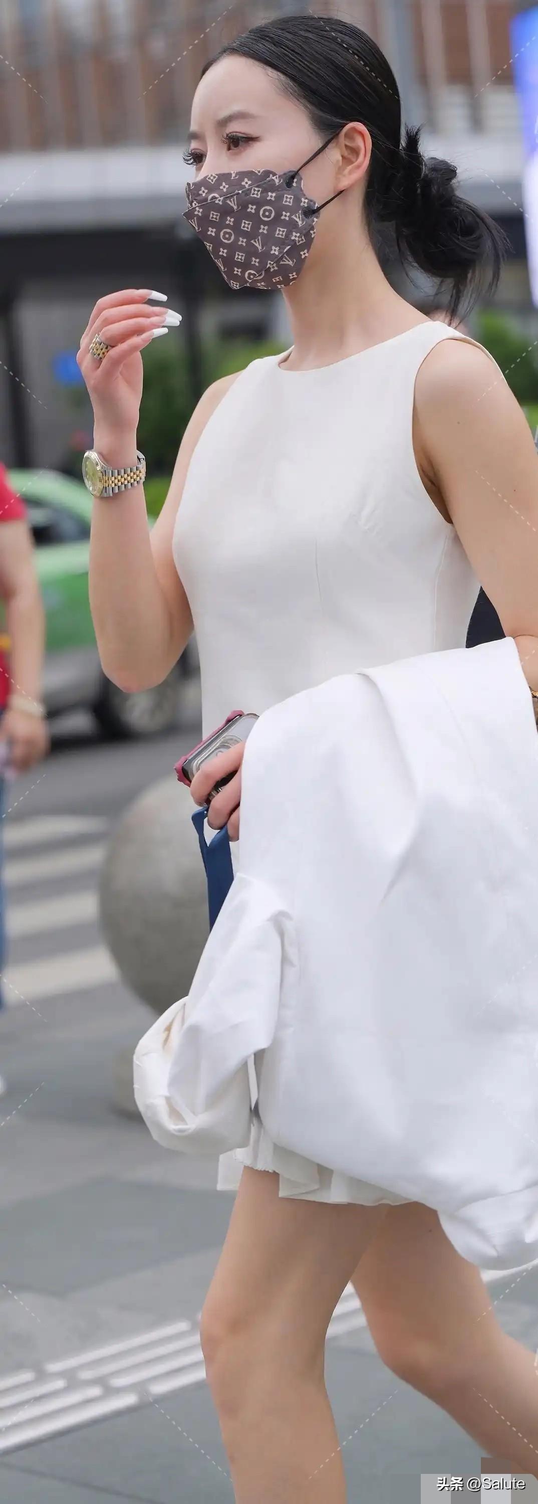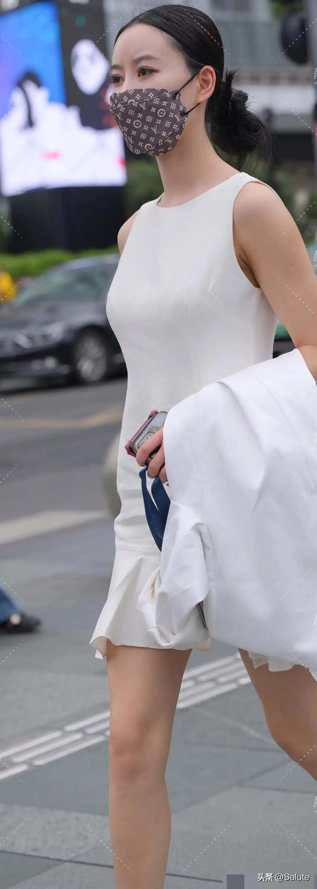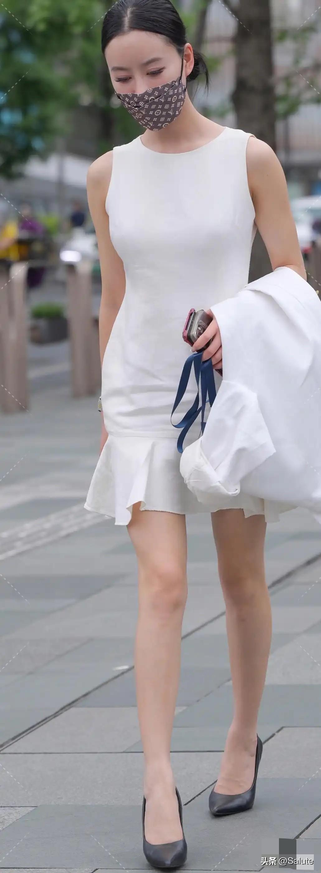 都市时尚女郎,白色连衣裙搭配高跟鞋,优雅出行!