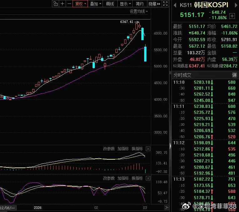 韩国股市直接跌停了!昨天韩国股市大跌7CM,今天再度大跌11CM。2026年全球涨幅最大的韩国股市,这两天跌幅最大。