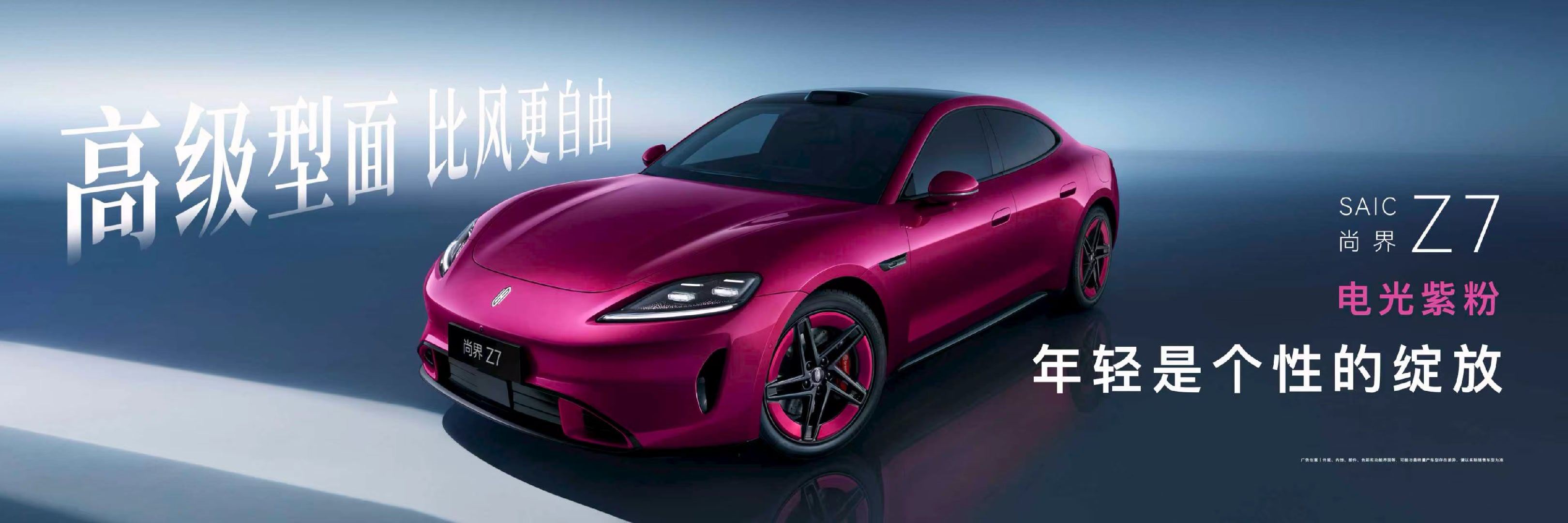尚界Z7电光紫粉 尚界Z7定位风尚科技轿跑,从车身高级型面到都市流光大灯,充分满足年轻用户的个性化表达。同时,尚界Z7新色电光紫粉亮相,新车还将提供多种丰富的个性化车色选择,每一款都独具特色,将全方位覆盖年轻用户的多元审美偏好。尚界Z7新色夯爆了