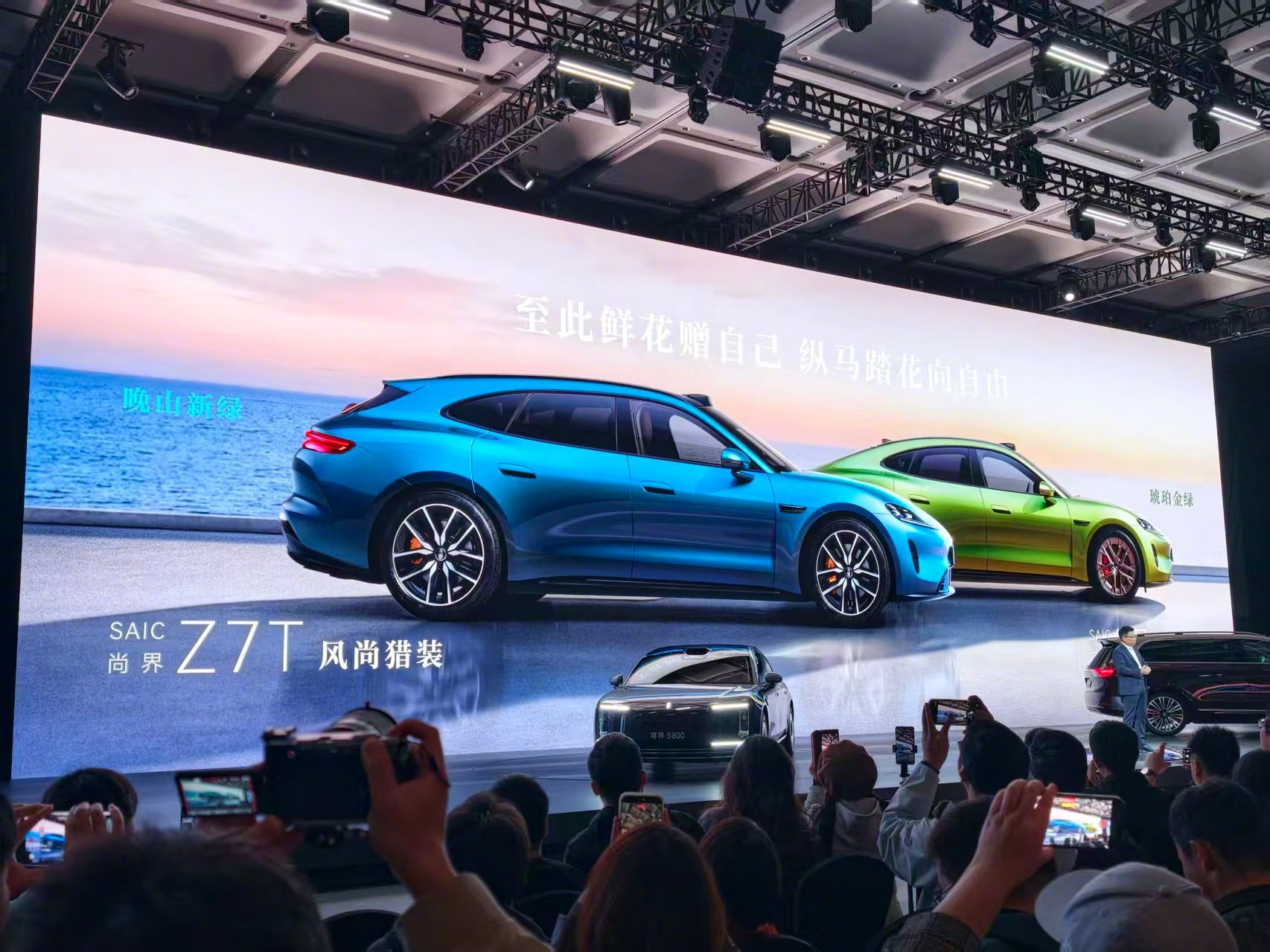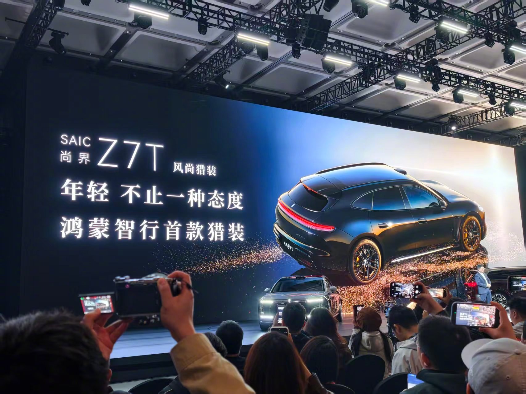 发布会还来了一波预热,尚界 Z7、尚界 Z7T 猎装版,3 月底发布。外观有电光紫粉、晚山新绿、琥珀金绿以及黑色,很年轻有活力!鸿蒙智行技术焕新发布会