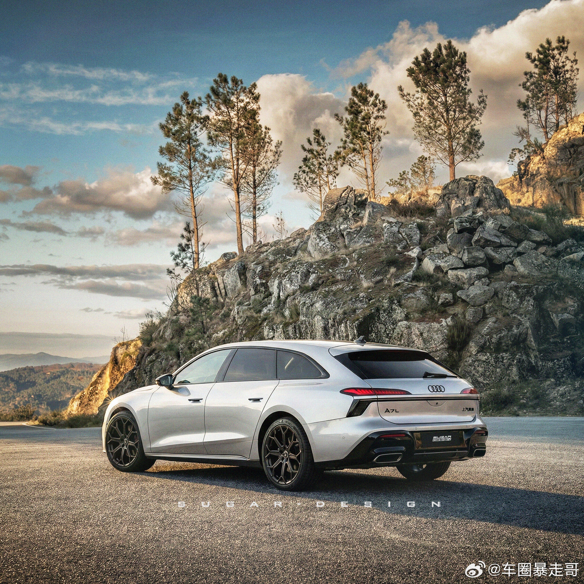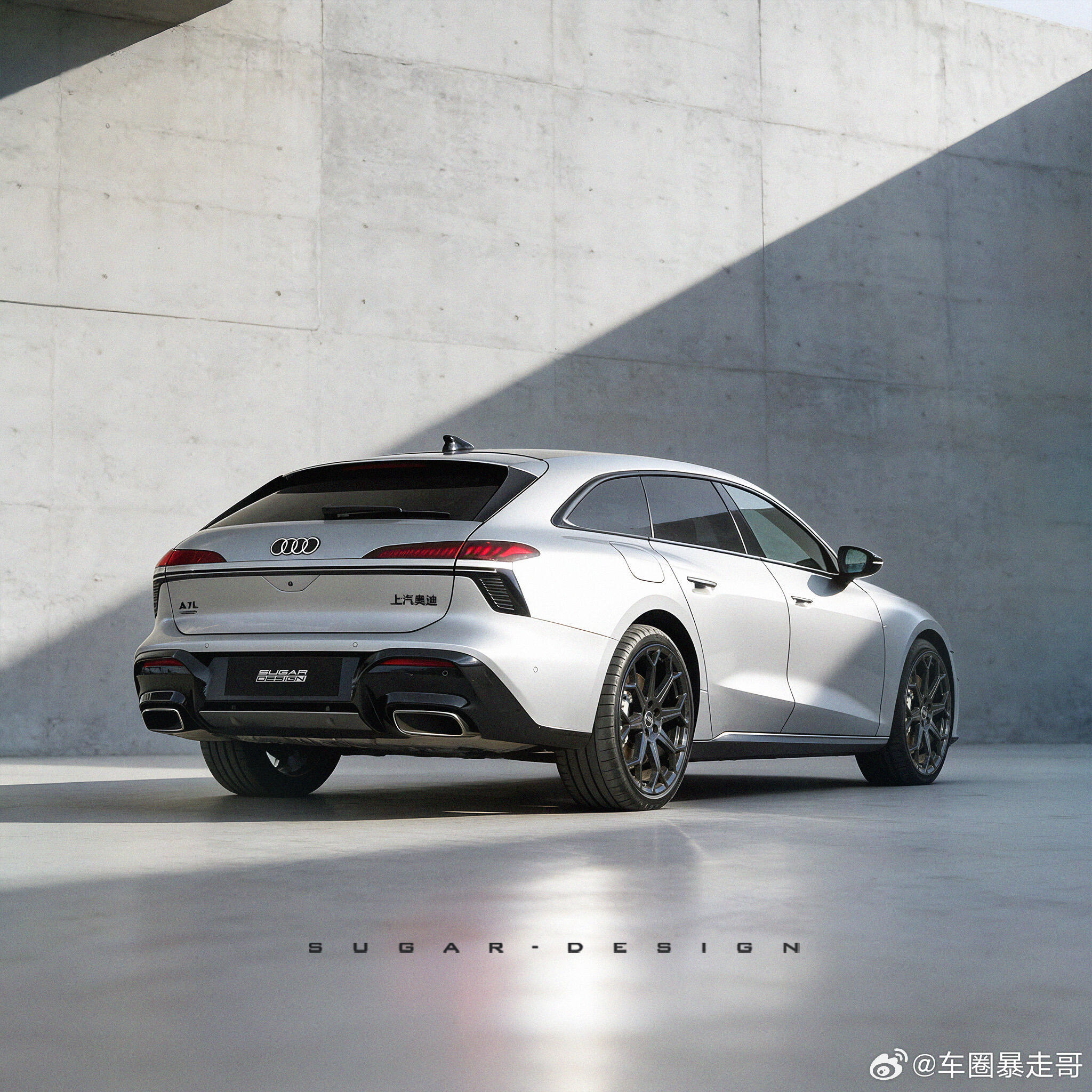 大v聊车 上汽奥迪A7L Sportback猎装车新车预览!终于揭开了上汽奥迪A7L Stb尾部神秘的面纱。尾灯造型和海外版本A6旅行车区别不大,只是内部灯型有所调整。整体来说,A7L Stb非常修长,尤其是下压后的车顶让侧窗视觉效果更长了