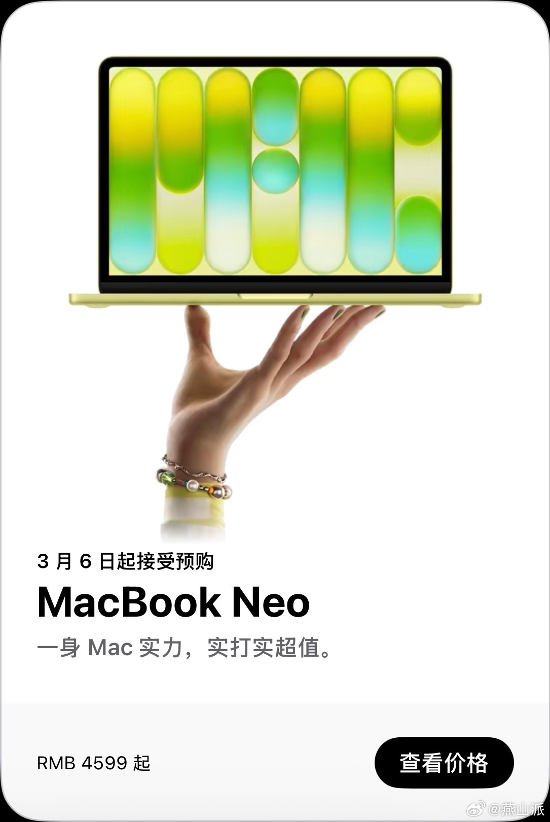 传了好多年的超低配Mac来了,命名MacBookNeo,起售价4599元,搭载A18Pro芯片,主打轻薄续航,官宣续航18小时,你会买吗?苹果发布全新MacBookNeoMacBookNeo定价4599元起