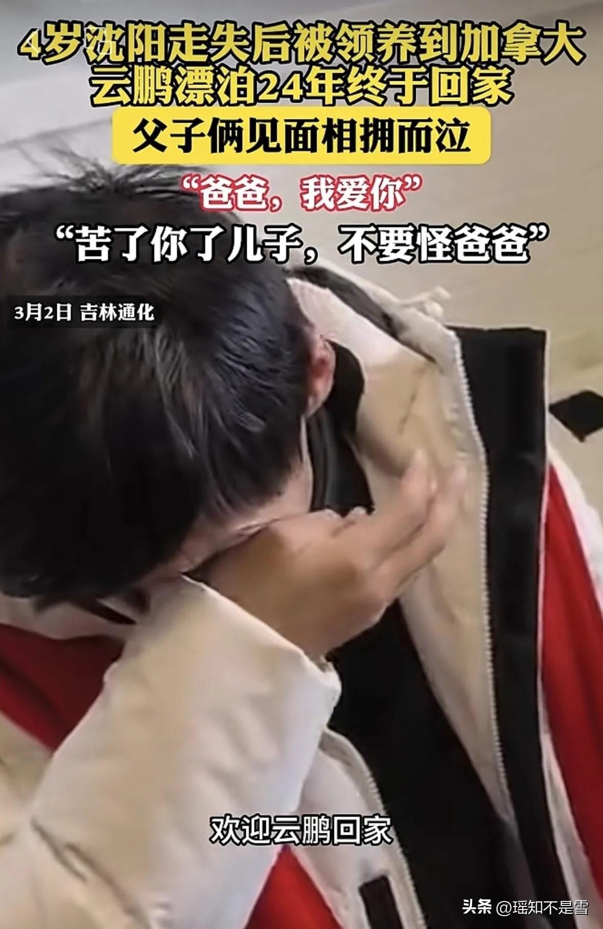 走失25年,从加拿大漂泊归来!张云鹏认亲现场看哭全网:家,才是永远的归途 2026年3月2日,吉林通化辉南县,一条“欢迎宝贝张云鹏回家”的红色横幅,终于等来了一场迟到25年的团圆。 小区楼下的人群攒动,没有华丽的布置,只有满街的乡音和攥在手里的热泪。 父亲张久成攥着提前准备好的白色羽绒服,他盯着路口的方向,眼睛一眨都不敢眨。张云鹏跟着志愿者走进小区时,脚步放得很慢,眼神里藏着紧张又期盼的光。 父子俩目光对上的瞬间,所有的陌生感都被血脉里的牵挂冲散,张久成一把抱住儿子,积压25年的愧疚与思念全都涌了上来,哭声压在喉咙里,听得在场所有人都红了眼眶。 姑姑冲过来搂住他,哭到几乎晕厥,嘴里反复喊着“我的侄儿,你可算回来了”。 2001年,4岁的张云鹏在沈阳北站候车时走失,那时候家人转身去买一支冰激凌的功夫,年幼的他就消失在拥挤的人流里。 被好心人送到沈阳福利院后,他有了新名字沈华柏,模糊的童年记忆里,只剩家乡模糊的轮廓和亲人温柔的声音。 父亲张久成当年在狱中得知孩子走失的消息,急火攻心当场口吐鲜血,出狱后他放下所有事,一门心思找儿子,跑遍东北大大小小的城镇,登报、求助警方、加入寻亲组织,2014年就主动采血录入数据库,这么多年从来没断过寻亲的念头。 家里的老房子一直没动,墙上还留着他小时候画的涂鸦,衣柜里收着他穿小的衣裳,逢年过节的饭桌,永远多摆一副碗筷。 9岁那年,张云鹏被加拿大夫妇收养,本以为终于能拥有安稳的家,可短短三个月,养父母因离异将他遗弃。 异国他乡的日子里,他辗转多个寄宿家庭,从小就学着自己谋生,打零工、凑学费,夜里常常对着窗外发呆,他不知道自己的根在哪里,也不知道还有家人在千里之外等他。 2025年,他刷到寻亲成功的视频,心里的念头再也压不住,在网友和海外志愿者的帮助下,他采集DNA血样寄回国内。 命运终于眷顾这个苦命的孩子,样本与张久成高度匹配,确认亲缘关系的那一刻,他愣了很久,随后趴在桌上哭出声,他终于知道,自己的家乡在吉林通化,有家人等了他整整25年。 那段时间,他把所有空闲时间都用来学中文,把“爸爸”“回家”写在小纸条上,走到哪带到哪,发音不准就反复练,记不住就一遍遍写。 2026年2月27日,他落地北京的第一句话,是想吃一口家乡的酸菜饺子,咬下饺子的瞬间,这个在国外漂泊多年的男人,眼泪止不住地掉。 从北京到通化,一路的风景越来越熟悉,乡音越来越真切,他离那个盼了25年的家,越来越近。 认亲现场,他用刚学会的中文喊出“爸爸,我爱你”,张久成频频拭泪,一遍遍摸着儿子的脸,生怕这是一场梦。 全网都在为这场团圆落泪,有人心疼他异国漂泊的坎坷,有人感慨父亲25年不放弃的坚守,更多人读懂了亲情最本真的力量。 25年的颠沛流离,25年的望眼欲穿,跨越山海与时光,所有的苦难都在相拥的这一刻,有了最温暖的归宿。 家从来不是一个简单的地址,是刻在血脉里的牵挂,是历经风雨也不会熄灭的灯,是无论走多远,都能安心奔赴的终点。 各位读者你们怎么看?欢迎在评论区讨论。