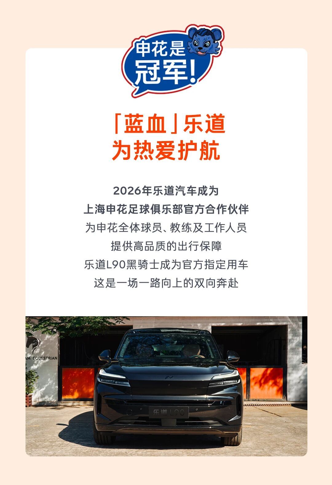 中超新赛季 3 月 7 号就开打,申花作为上海老牌豪门,一出手就是强强联手。一边是承载了几代上海人情怀的球队,一边是主打家庭出行的纯电品牌,这波组合看着就舒服。申花从 1993 年到现在,三十多年风风雨雨,那种不服输、一路往上冲的劲儿,和乐道一直强调的靠谱、踏实、为家庭出行负责的理念,特别对味。与其说是赞助,不如说是精神契合,双向奔赴。