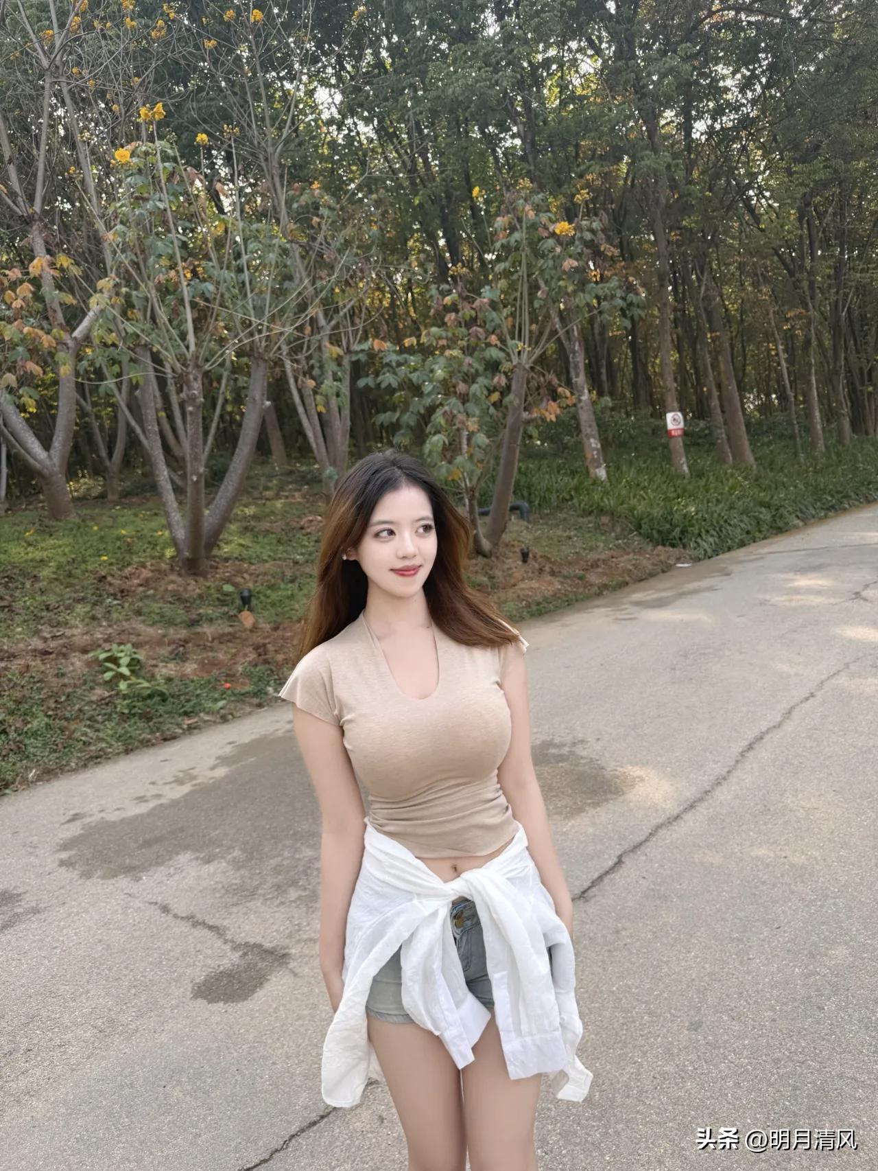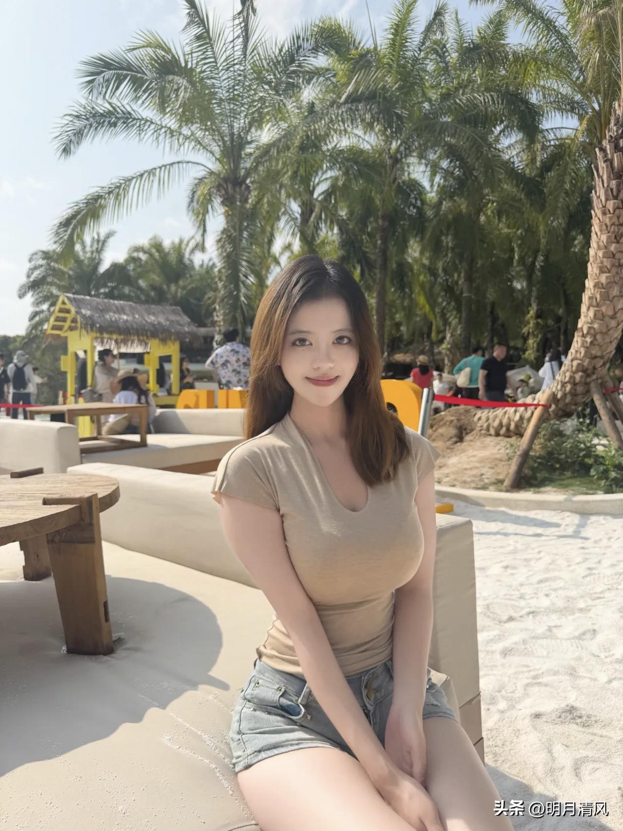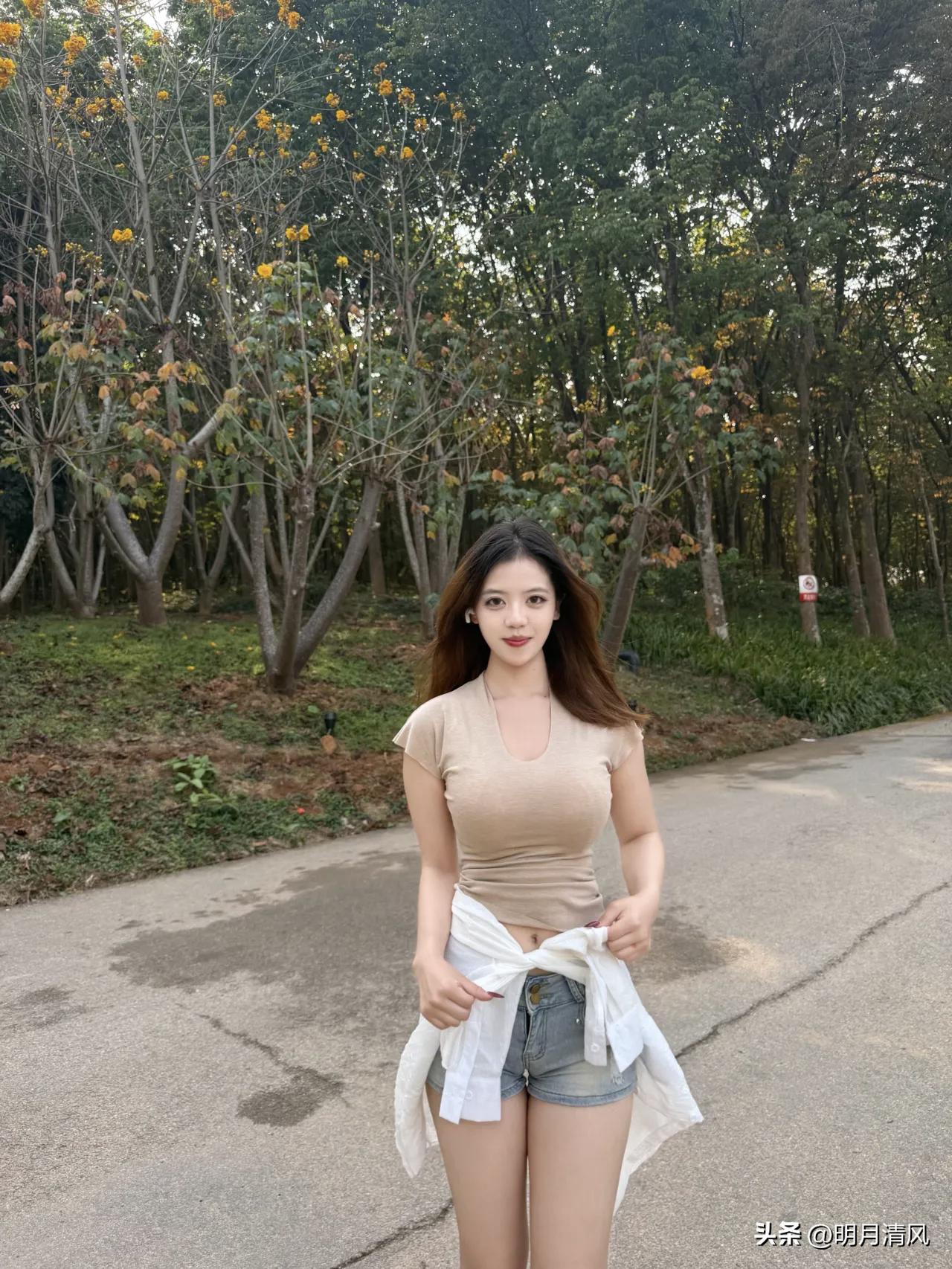 走在热带的路边,阳光从树叶缝里漏下来,一地都是碎光。她站在路中间,低头整理腰间那件白色外搭。米色上衣贴身穿,牛仔短裤下面腿很直。就是很随意的动作——双手抬在腰前,捏着布料轻轻扯了扯,像觉得哪里没弄好,想调整一下。 然后她抬起头,正好看见镜头。 背后是成片的绿树,开着黄色小花的那种,风吹过来,头发有一点乱。那个瞬间特别自然,不是摆好姿势等拍,就是刚好停下来、刚好抬头、刚好被拍到。 我举着手机想,旅行的照片就该是这样吧。不用太认真看镜头,不用刻意做什么动作。整理一下衣服,看看路边,走走停停,就已经很好看了。 你们出门拍照,是不是也喜欢这种随手抓的瞬间? 热带旅游