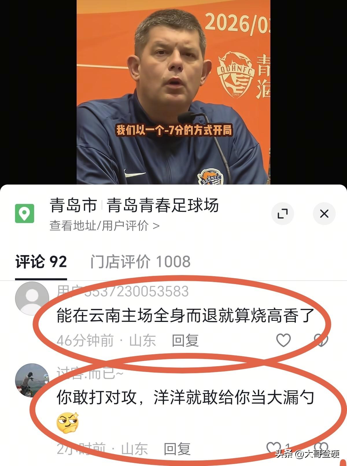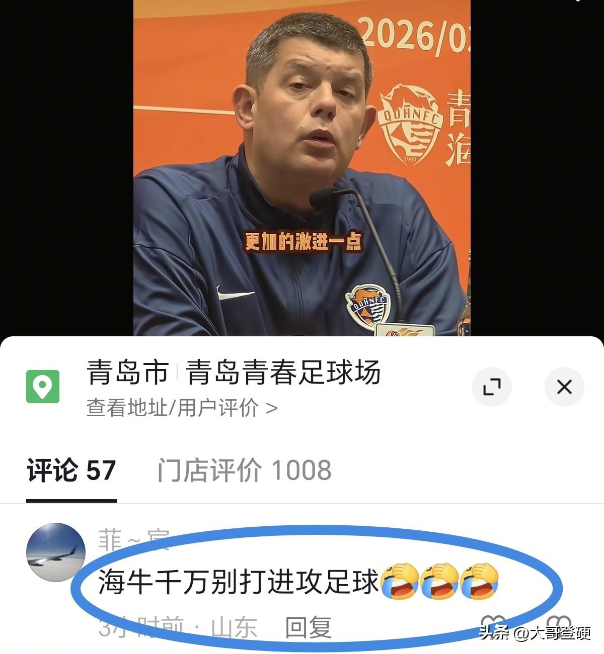 “压出去打”?!青岛海牛主教练是飘了吗?还是青岛啤酒🍺喝多了?[what] 北京时间3月5日,青岛海牛队新赛季中超壮行会如期举行,在接受采访时,青岛海牛队主教练米兰表示,新赛季青岛海牛队拥有五外援,要压出去打…… 看完这个采访,估计青岛海牛球迷都得为球队捏一把汗,新赛季就青岛海牛队这个阵容,老的老小的小,还压出去打,这不得被被对手打花了啊?[what] 压出去打的一个先决条件是全队拥有充沛的体能,能满足全场比赛的需求,而不是只有七十分钟体能,老球迷都知道,压出去打最考验球队的是最后二十分钟[泪奔] 上一个有这个想法的中超主教练是谢晖,在大连人和长春亚泰连续吃瘪之后,已经找不到下家了,目前还在赋闲中…… 首轮云南玉昆先验验货,中超其他球队瞧好就行了,如果青岛海牛队首轮客场挑战云南玉昆,估计一场惨败基本上提前预定了[笑哭]