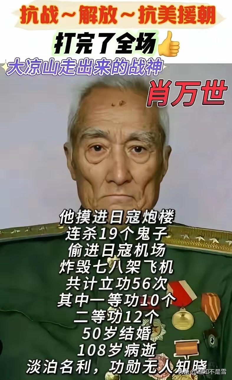 肖万世上了一辈子战场,最窝火的不是挨枪子,是那一泡屎。 1938年 冬天,他押着12个日军俘虏转移。上头交代得死:这些人都是当官的,活的比死的值钱,一根汗毛都不能少。 队伍走了一天一夜,他肚子突然翻江倒海。夹着腿跟底下人吼:“看死了啊,少一根毛我找你们算账!”说完钻了草丛。 1938年的冀中平原,冬风裹着冰碴子往骨头缝里钻,冻硬的土路踩上去硌得生疼。 肖万世那会刚满二十二岁,是河北邢台的普通农家汉子,爹娘全都丧生于日军的扫荡,揣着血海深仇参军的他,入伍仅一年就成了队伍里敢打敢冲的尖兵。 这次押送的12个日军俘虏,全是侵华日军的基层指挥官,手里攥着前线作战的核心情报,是部队拼尽全力活捉的关键人物,上级的死命令没有半分商量的余地,这十二个人的安危,直接关联着后续战场的布局。 一天一夜的急行军没有片刻停歇,他和战士们全程没碰过一口热食,怀里的窝头冻成了硬疙瘩,只能就着路边的雪水勉强下咽。 冰冷的食物狠狠刺激着空乏的肠胃,那股突如其来的腹痛来得猝不及防,又猛又烈。 他在战场上迎着日军子弹冲锋,被刺刀划破皮肉,被弹片擦过身躯,从来都是眉头不皱,可此刻生理上的失控感,让他浑身绷得紧紧的,急得额角直冒冷汗。 他不敢有丝毫耽搁,草丛外的俘虏全是穷凶极恶之徒,即便被粗绳捆缚,也随时可能伺机反扑。 他夹着腿嘶吼的模样,不是无端的蛮横,是深深刻在骨子里的任务焦虑,随行的战士都清楚这位排长的秉性,任务面前从不容许半分差池,他的话音刚落,所有战士的目光就死死锁在了俘虏身上。 钻进草丛的瞬间,他的耳朵始终贴向地面,风声、战士的脚步声、俘虏粗重的喘息声,每一丝动静都揪着他的心脏。 他这一生亲历过上百次战斗,枪林弹雨里数次死里逃生,斩获过十次一等功、十二次二等功,身上的伤疤数都数不清,所有伤痛都能咬牙硬扛,唯独这短短几十秒的分身,让他心底翻涌着止不住的窝火。 他怕自己离开的片刻出现意外,怕辜负上级的重托,怕战友们的付出付诸东流,更怕这些沾满同胞鲜血的日军军官,因为自己的一时疏忽逃出生天。 不过半分钟,他便匆匆起身,裤脚挂着枯草就往队伍冲,脸上的急色藏都藏不住。刚回到队伍旁,就看见一名日军俘虏正拼命挣动绳索,妄图挣脱束缚,身边的战士已经迅速将其按制。 肖万世攥紧的拳头悬在半空又收回,他死死记着上级留活口的命令,只是压着怒火厉声呵斥,那股憋屈与恼怒,全是对任务失守的恐惧。 这份窝火从来不是对生理不适的抱怨,是一名中国军人对职责的极致坚守。肖万世一生战功赫赫,却从未将荣耀挂在嘴边,晚年褪去军装,他只是工厂里一名普通工人,儿孙辈只知道爷爷打过鬼子,从不知他是立下赫赫战功的英雄。 他晚年总跟家人提起这件事,战场上的伤、痛、险都能熬,唯独1938年冬天的这泡屎,让他记了一辈子。 这不是一桩小事,是那个年代中国军人最真实的模样,他们把使命、国家、同胞放在生命之前,个人的任何需求,都要无条件为任务让路,半分松懈都不允许。 老英雄的这份执念,藏着最朴素的家国情怀,也藏着那一代军人最纯粹的坚守,没有豪言壮语,只有刻进骨血的责任,这才是我们该铭记的英雄本色。 各位读者你们怎么看?欢迎在评论区讨论。
