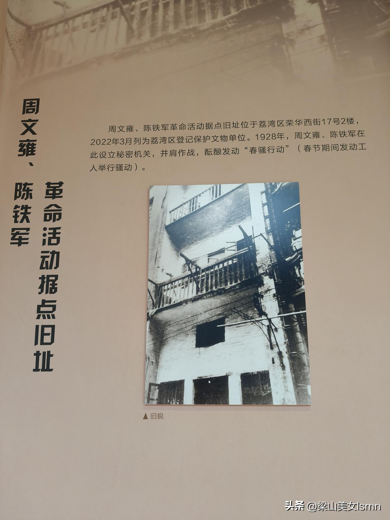 博物馆尤其需要一个人静静地沉浸式看的,如果两个人一起,会很容易变成走马观花没意思的。 昨天参观了荔湾博物馆。在第三展区看到陈铁军、周文雍这些资料,读到“假扮夫妻”,“不幸同时被捕”字眼的时候,我忽然想起来了小时候看过的《刑场上的婚礼》。惭愧,年代久远,连男女主角都忘了,但名字还记得叫《刑场上的婚礼》。然后搜索了一下资料,果然是他们啊。没有想到,两位男女主角,就是广东人,故事就发生在广州城里,就在荔湾,就在身边…… 说真的,以前我对博物馆,古迹之类是不太感兴趣的,但是一个人逛多了,慢慢的发现有味道了。“读史使人明智”,沉浸在博物馆中,你是在跟古人古物对话,你会联想,你会思考,你得到启发,你恍然大悟……这些,都需要你厚积薄发的知识和阅历,融会贯通,方可拼出其中的味道。
