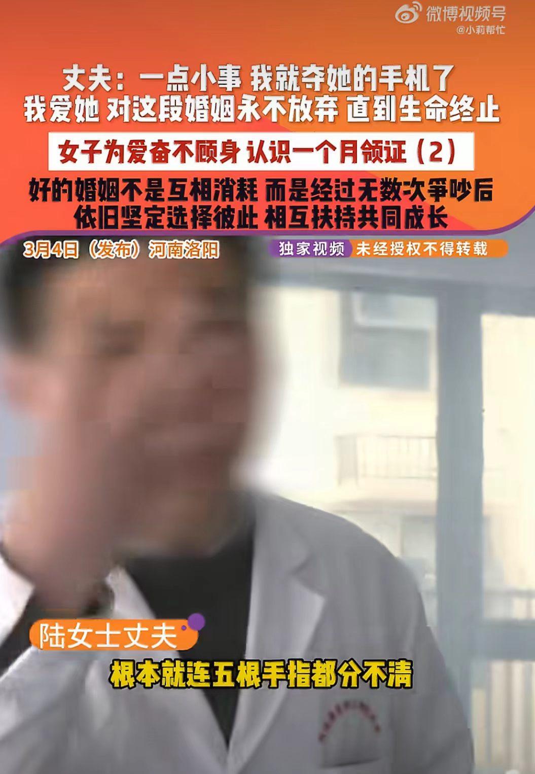 真想笑。 河南,陆女士和认识一个月的盲人偷偷闪婚。 婚后,陆女士说因为一点小事,就遭受丈夫的殴打。 很不能理解,盲人能打过一个正常人吗? 洗澡慢了点,陆女士的丈夫就冲到浴室把她拖出来殴打。 孩子出生黄疸高,因为怕花钱,就在医院走廊上向她吐口水、抱起来摔地上。 真的吗? 陆女士的丈夫无奈的说自己连5根手指都看不清,怎么打人? 婚姻不是过家家,不能因为一见钟情,就冲动的踏入婚姻,生活是不能靠爱情过一辈子。 最不能理解的是陆女士的丈夫和陆女士真情表白,说:“我会一辈子对你好,一辈子爱你。” 陆女士就原谅了,两人就和好如初了。 你觉得这家暴是真的吗? 盲人事件 闪婚 冬日生活打卡季