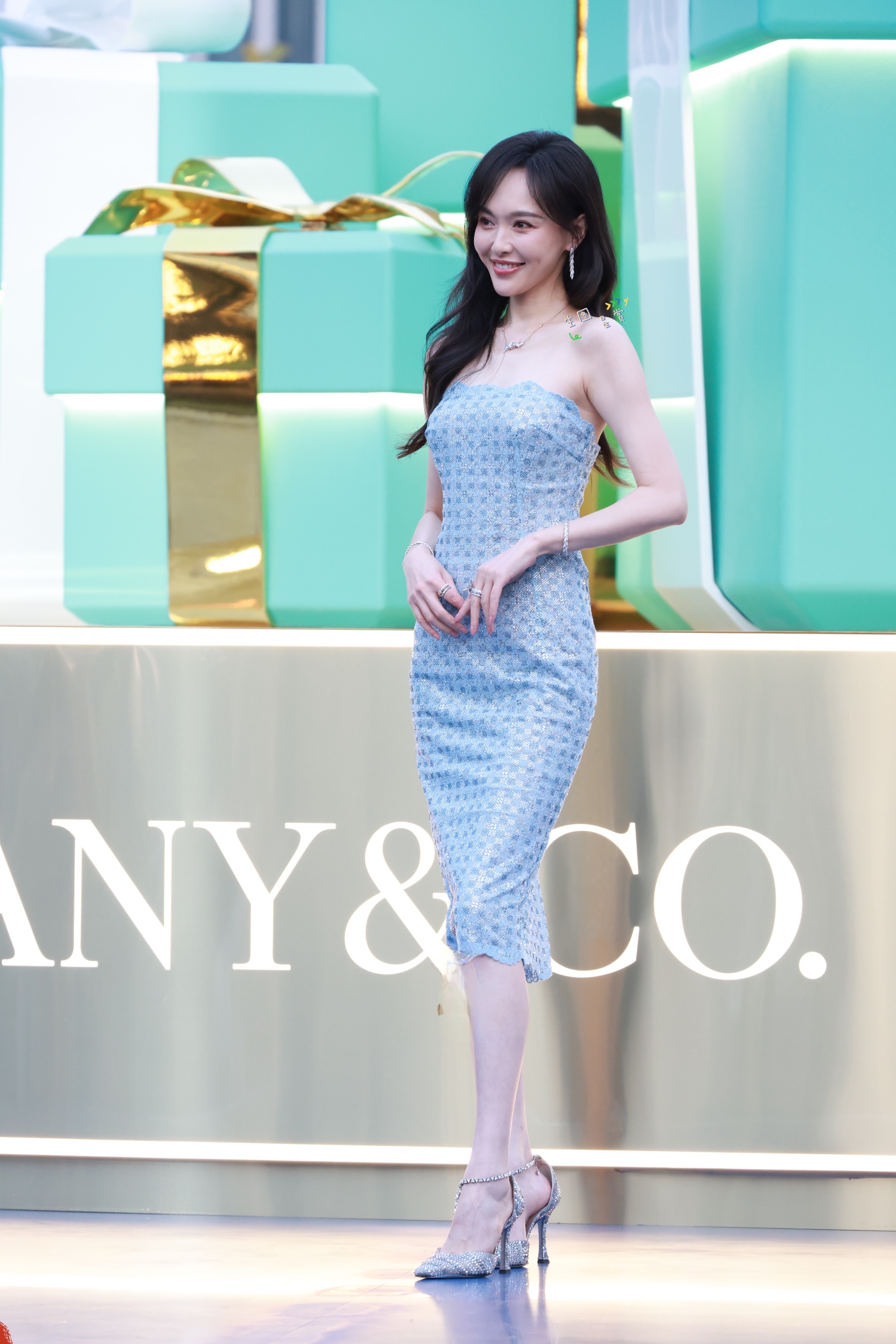 唐嫣穿得像个灯笼就出来了糖糖皮肤真白嫩啊搭配抹胸连身包臀裙钻石尖头细高跟更绝